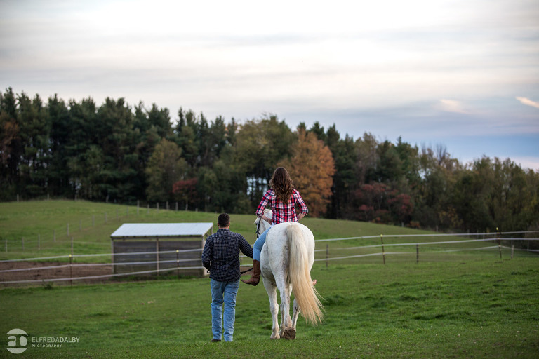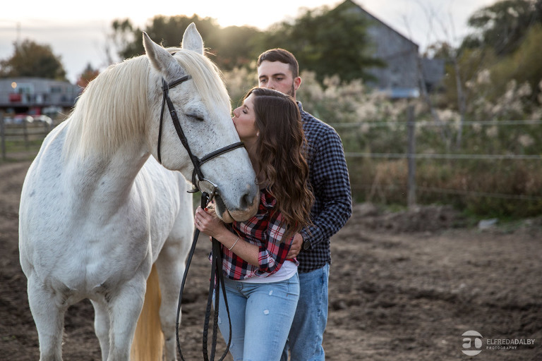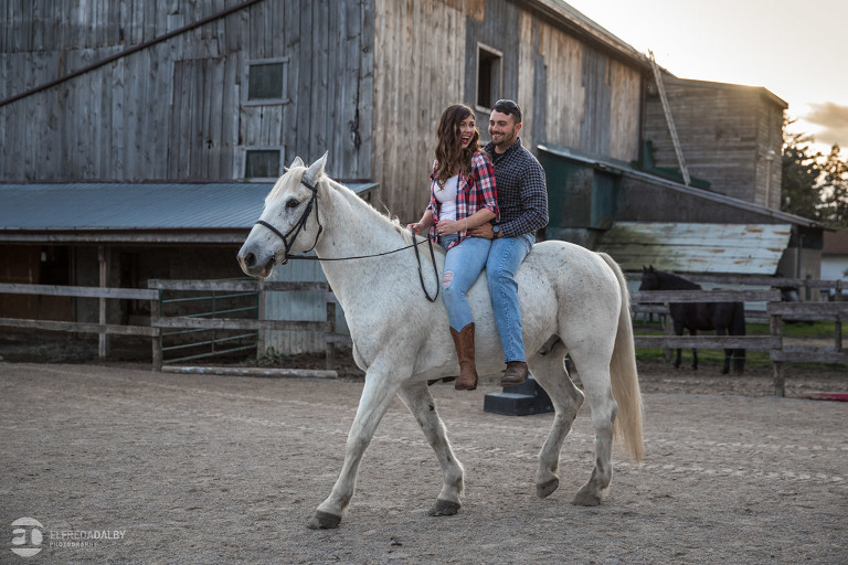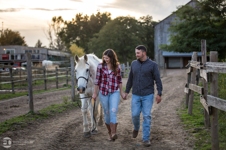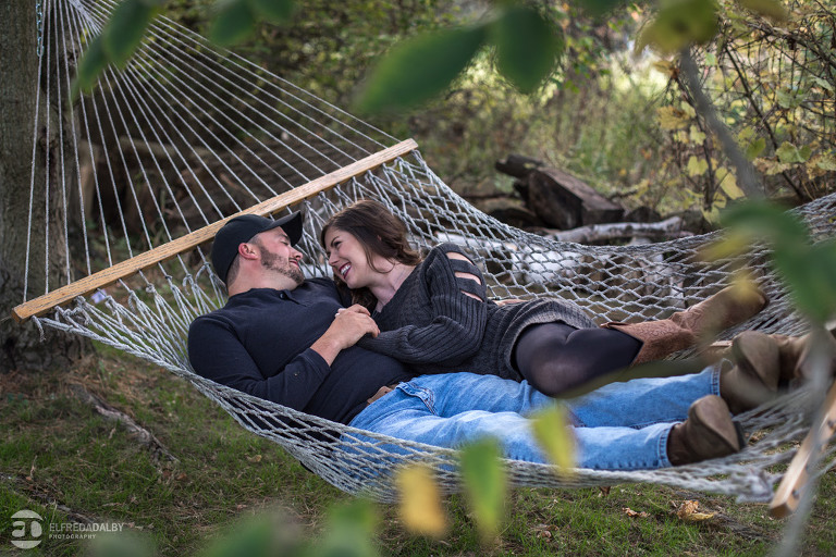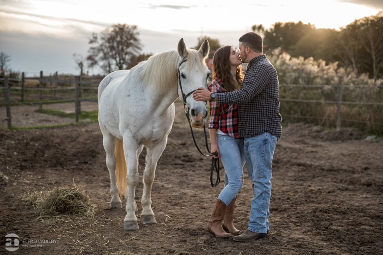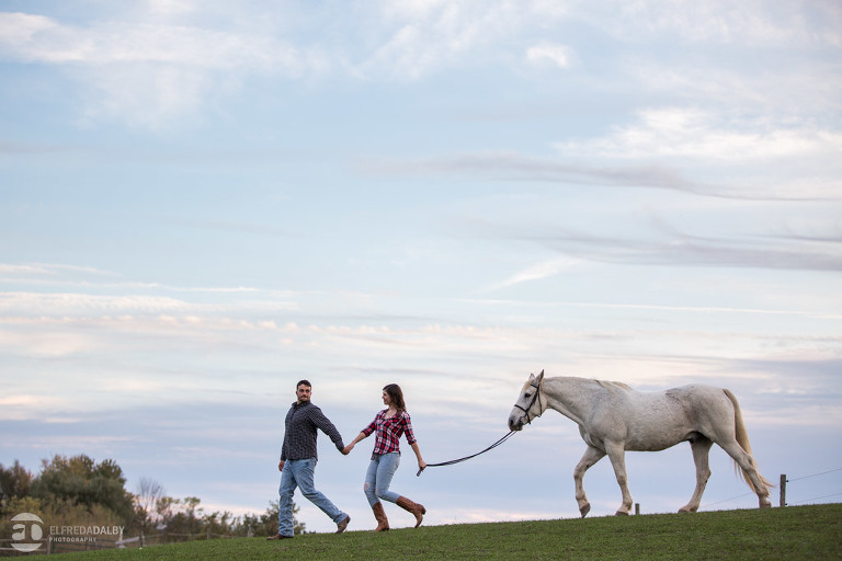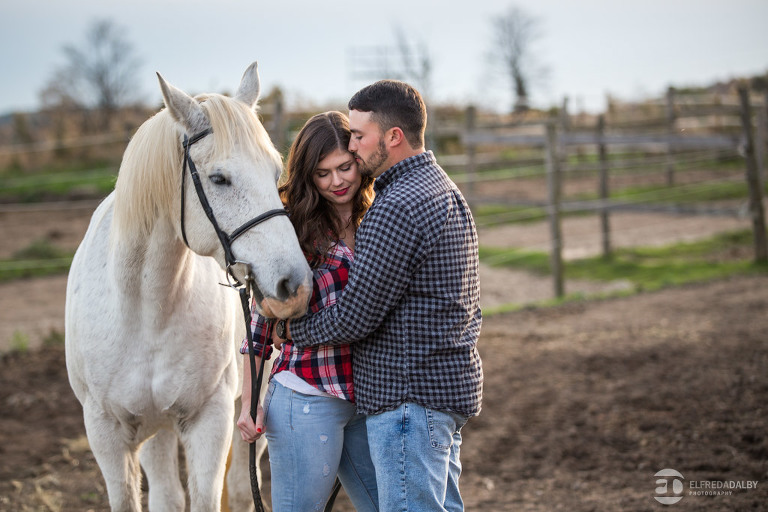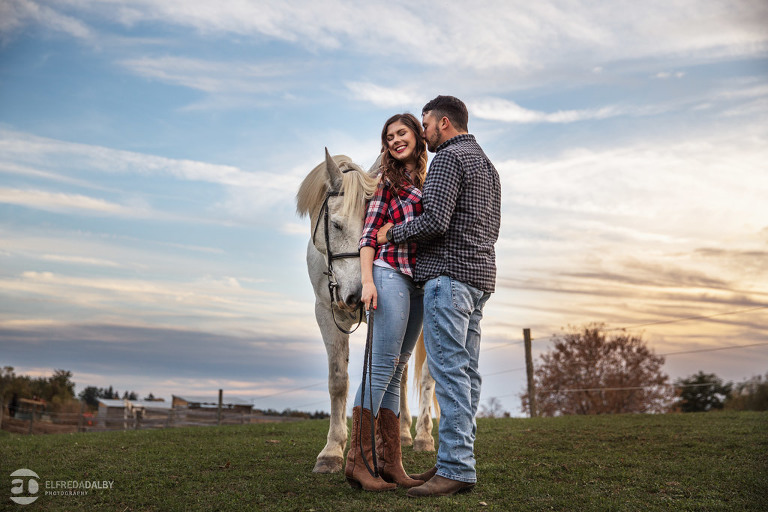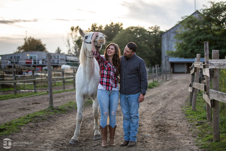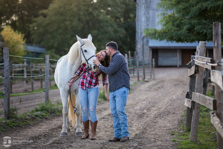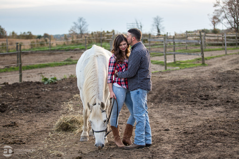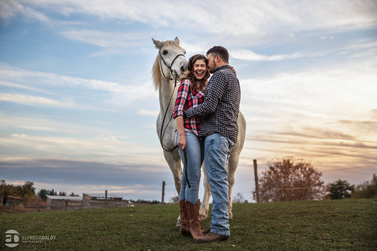 We met up with Chloe and Cal in Dundas for their engagement session. Their session had it all: a cute little dog, a beautiful horse, a cool Harley-Davidson motorcycle, and a trampoline to top it all off. Oh, and an awesome cool couple! C’mon! How could this not be a fun session? Well, it was super fun! We had an incredible time with Chloe and Cal!! We can’t wait to capture their wedding at Whistle Bear Golf Club in Cambridge next summer and spend the day with them again!!!