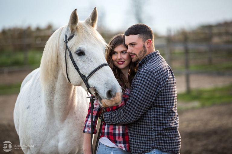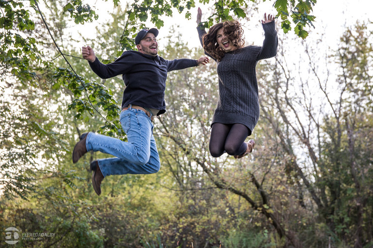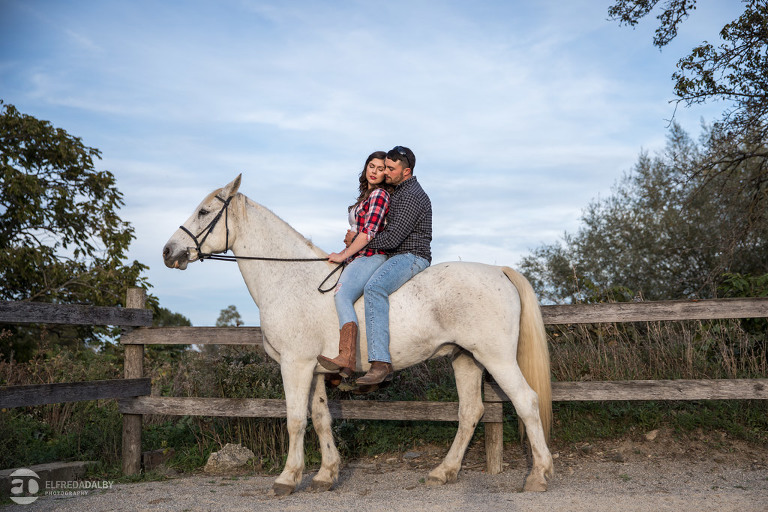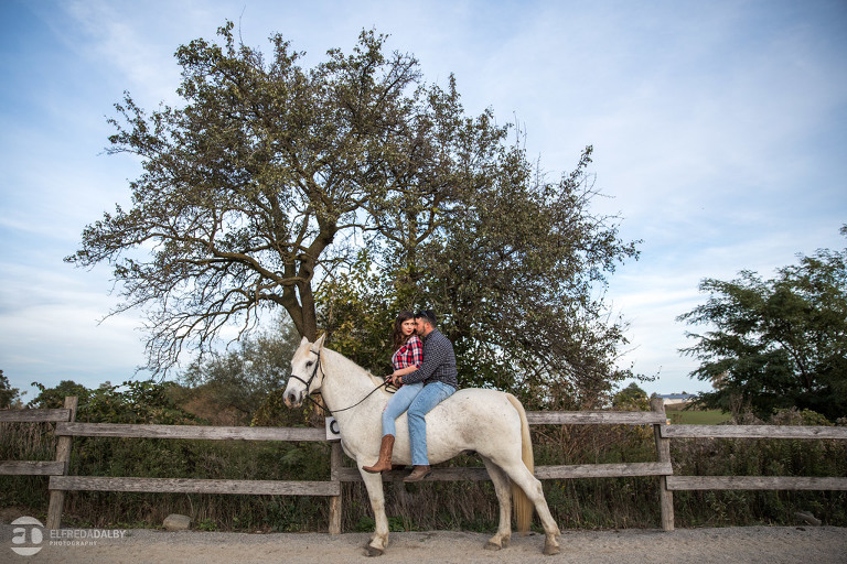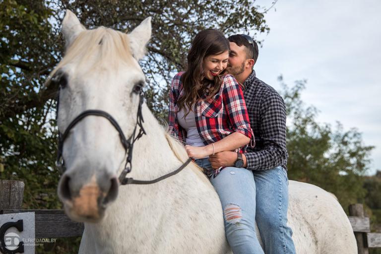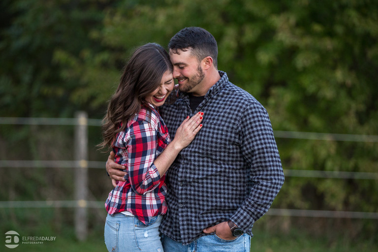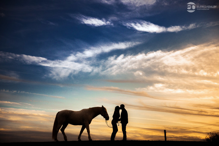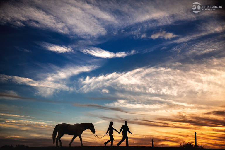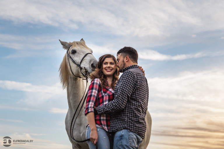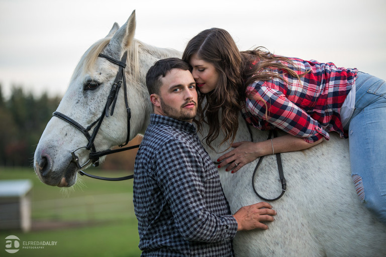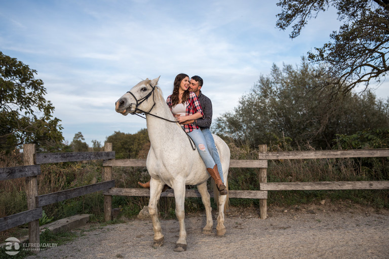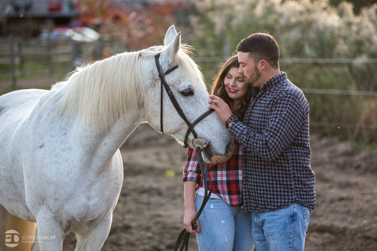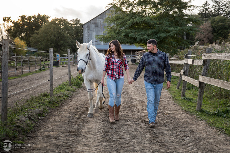 We met up with Chloe and Cal in Dundas for their engagement session. Their session had it all: a cute little dog, a beautiful horse, a cool Harley-Davidson motorcycle, and a trampoline to top it all off. Oh, and an awesome cool couple! C’mon! How could this not be a fun session? Well, it was super fun! We had an incredible time with Chloe and Cal!! We can’t wait to capture their wedding at Whistle Bear Golf Club in Cambridge next summer and spend the day with them again!!!