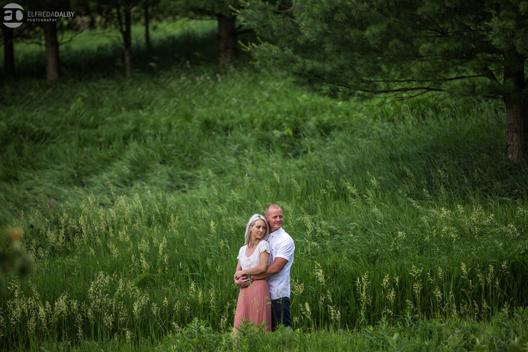 We travelled from Guelph to meet up with this beautiful family at Dundas Valley Conservation Area not long before we photographed their wedding at Whistle Bear Golf Club in Cambridge. Elfreda and I love to visit and shoot at new locations and Dundas Valley was the ideal spot for Vanessa and Mike’s family/engagement session. The timing couldn’t have been be better for their portrait session as it started pouring rain just as we were finishing up. Phew! So happy it all worked out perfectly!
