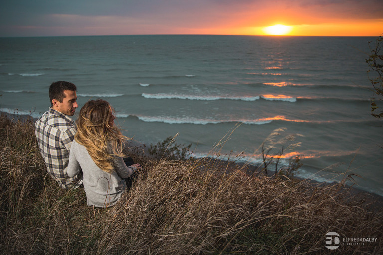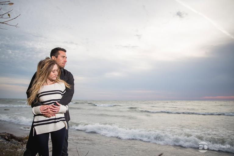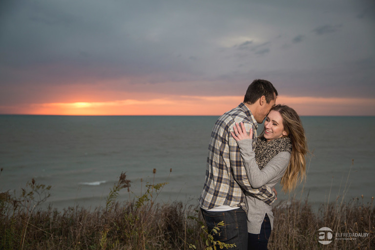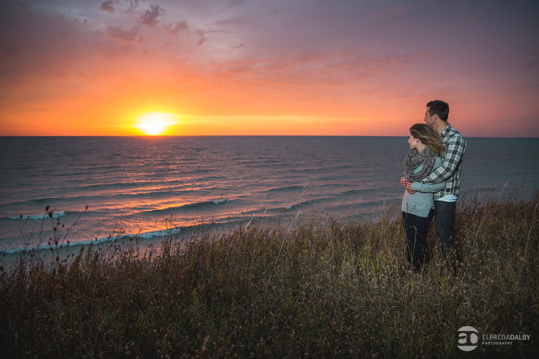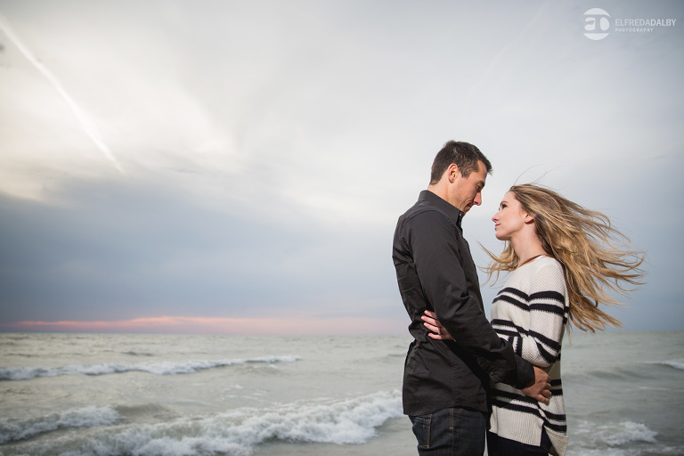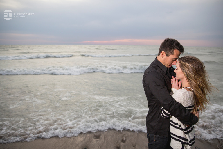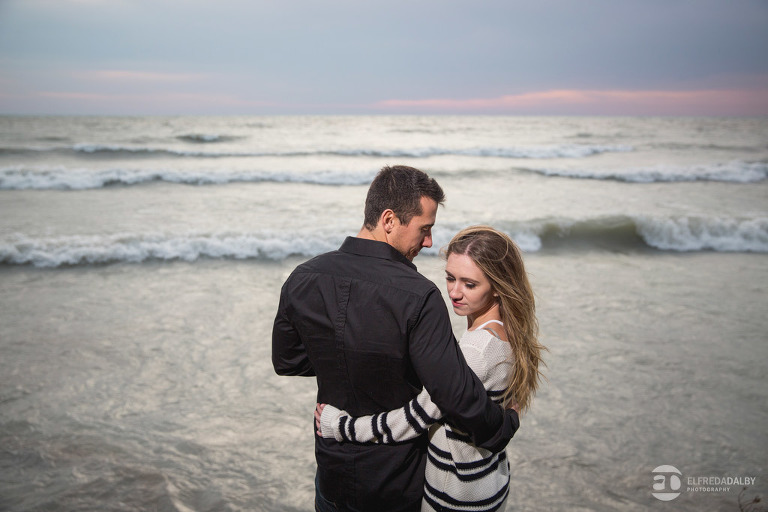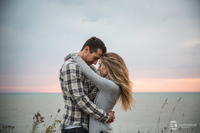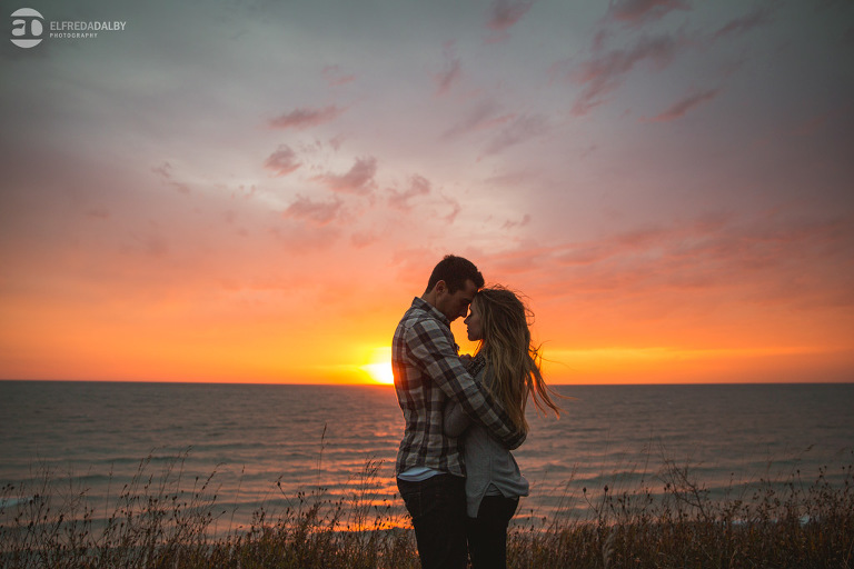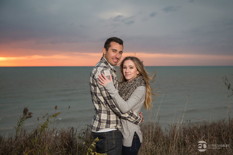 When Alex and Sam mentioned doing their engagement session at Alex’s family’s beach house on Lake Huron near Kincardine we were immediately excited about the idea. Elreda and I love the beach and being at the water. There is no place we’d rather spend our time than at the ocean or on a lake somewhere. Lake Huron also has the most spectacular sunsets and she didn’t disappoint that day as you can see. We did get a windy day though but we absolutely love the look of Sam’s hair blowing in the wind. To say we love Sam and Alex’s engagement photos would be an understatement. We had a perfect location, an incredible couple and a gorgeous sunset. I won’t gush anymore about it and let the photos speak for themselves. We had a fantastic time with these two and are really looking forward to photographing their wedding next year. Though they live in Stratford we’ll be on the road again to capture their wedding on Sam’s parents’ property. Can’t wait!!!
