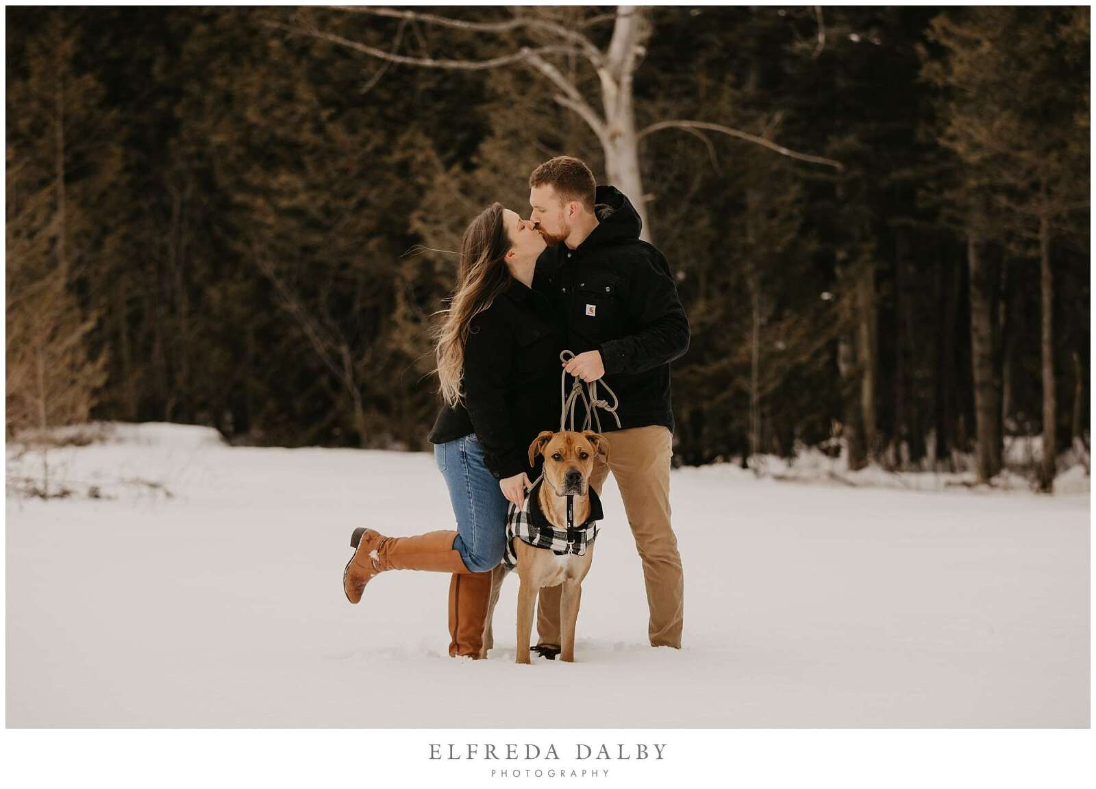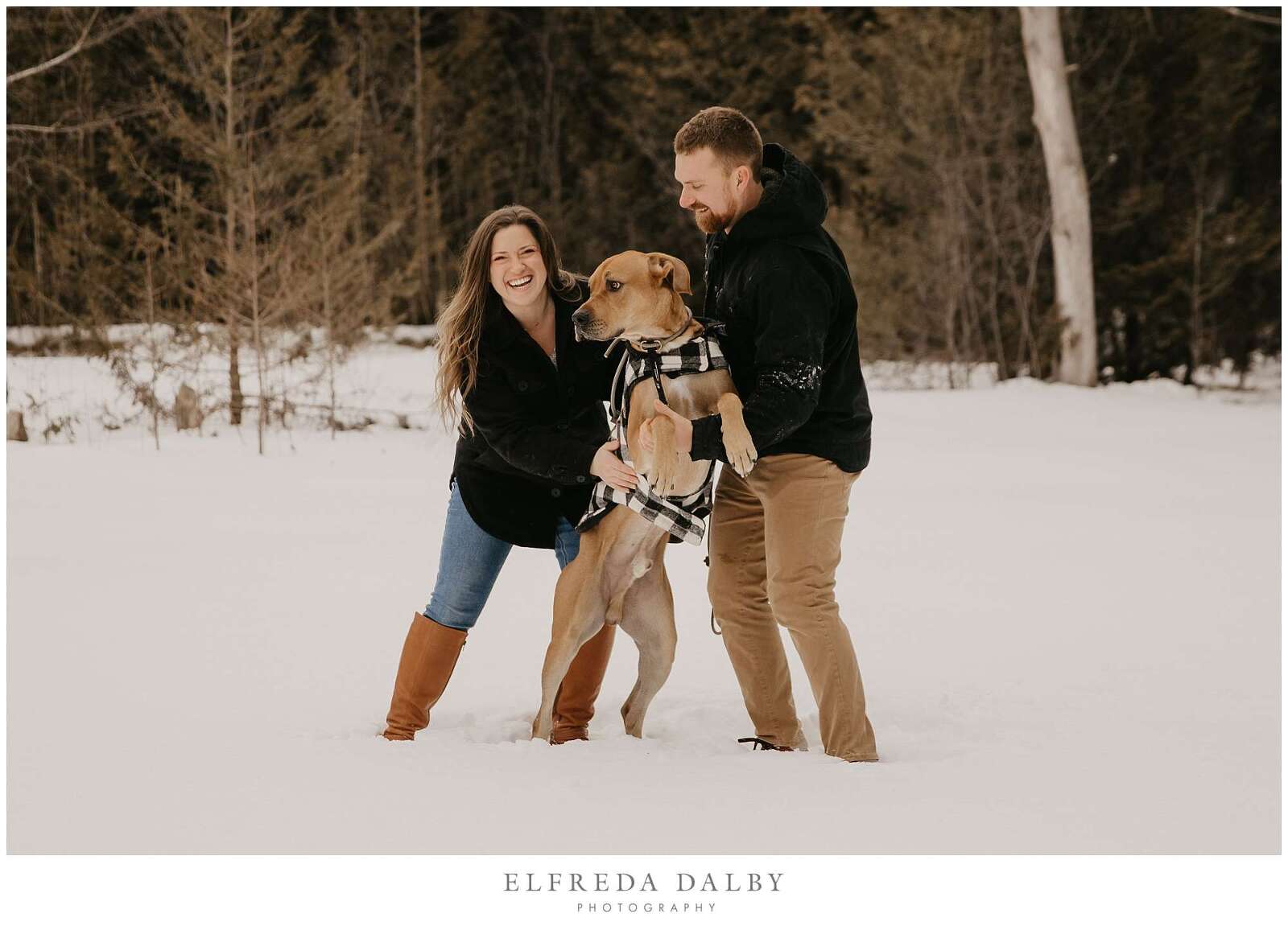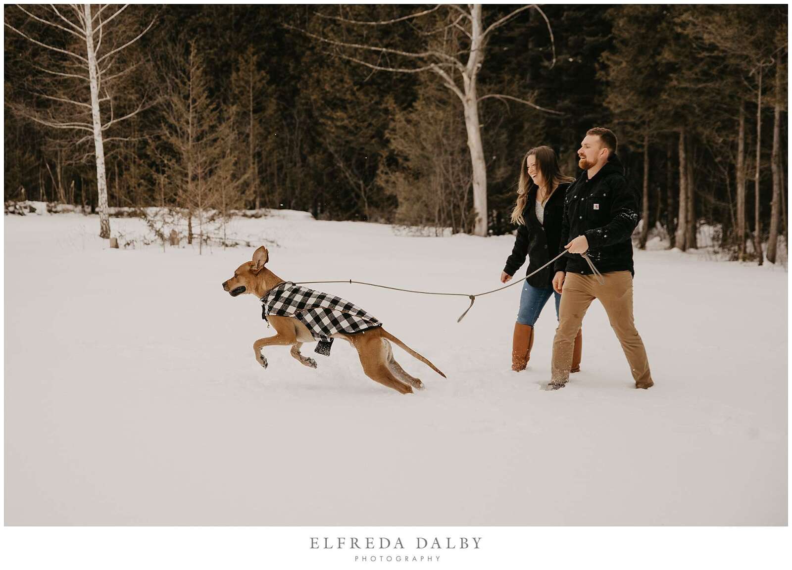 One of the highlights was their furry friend, Carlos. He joined in on the fun and we absolutely love it when couples include their dogs in the engagement photos and on their wedding day. We love dogs! Watching them slide across the frozen pond was a sight to see. It was a delightful mix of playfulness and love.