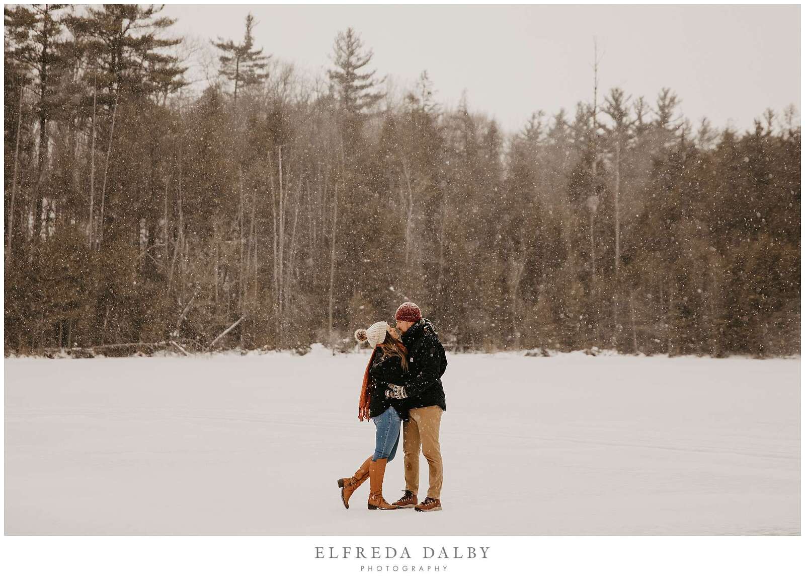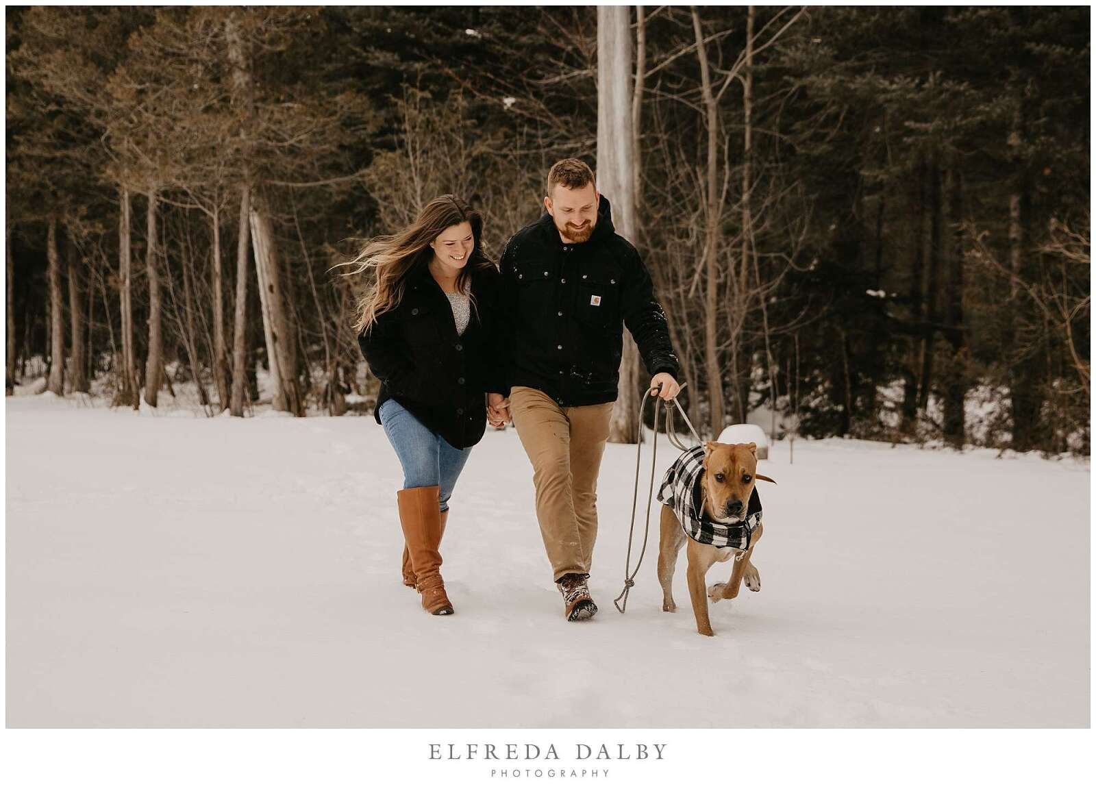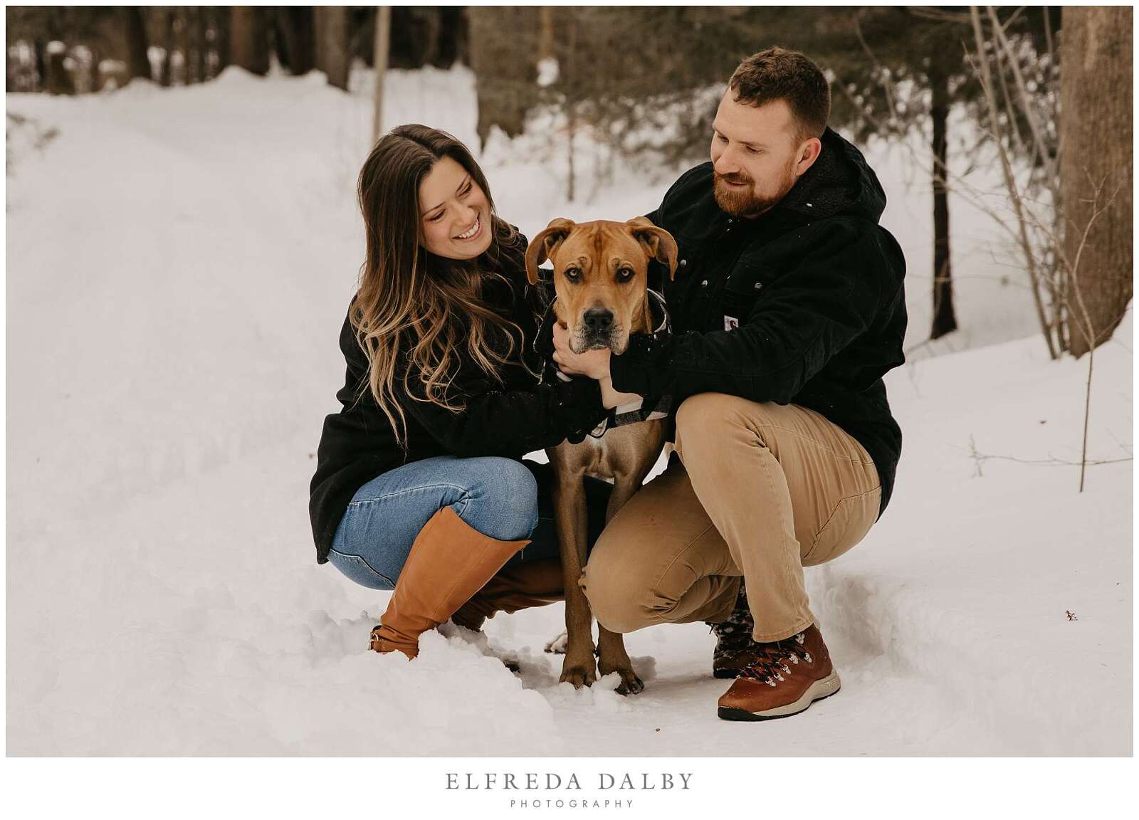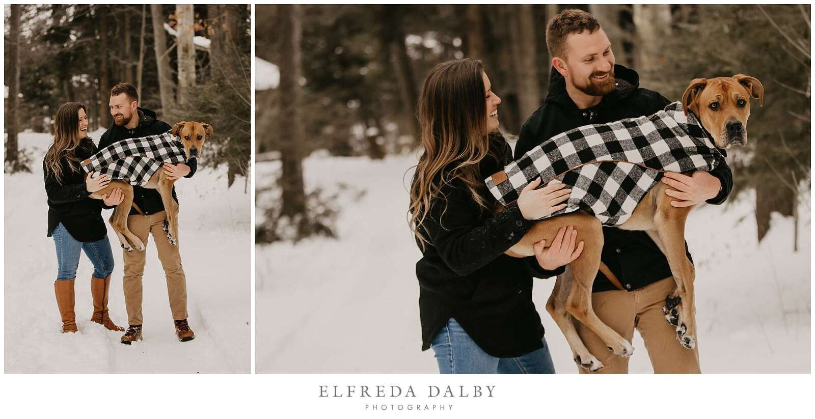 One of the highlights was their furry friend, Carlos. He joined in on the fun and we absolutely love it when couples include their dogs in the engagement photos and on their wedding day. We love dogs! Watching them slide across the frozen pond was a sight to see. It was a delightful mix of playfulness and love.