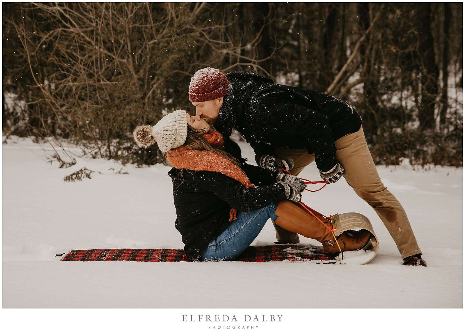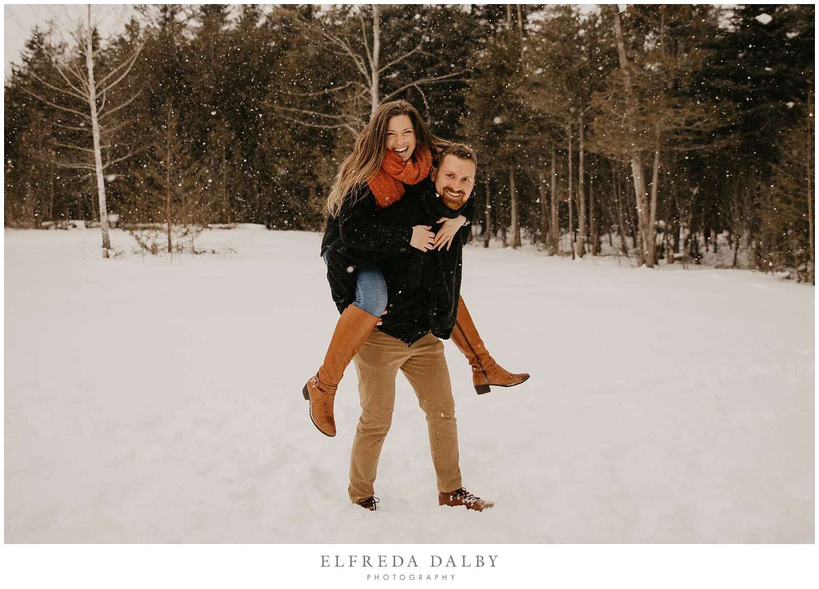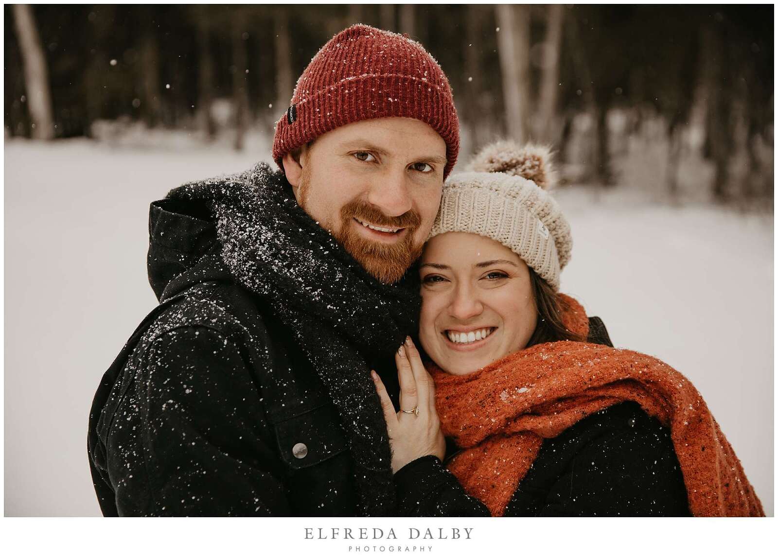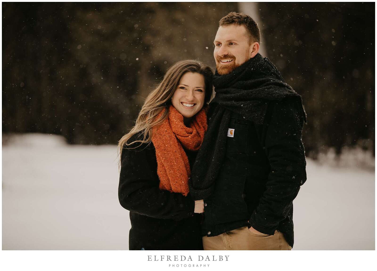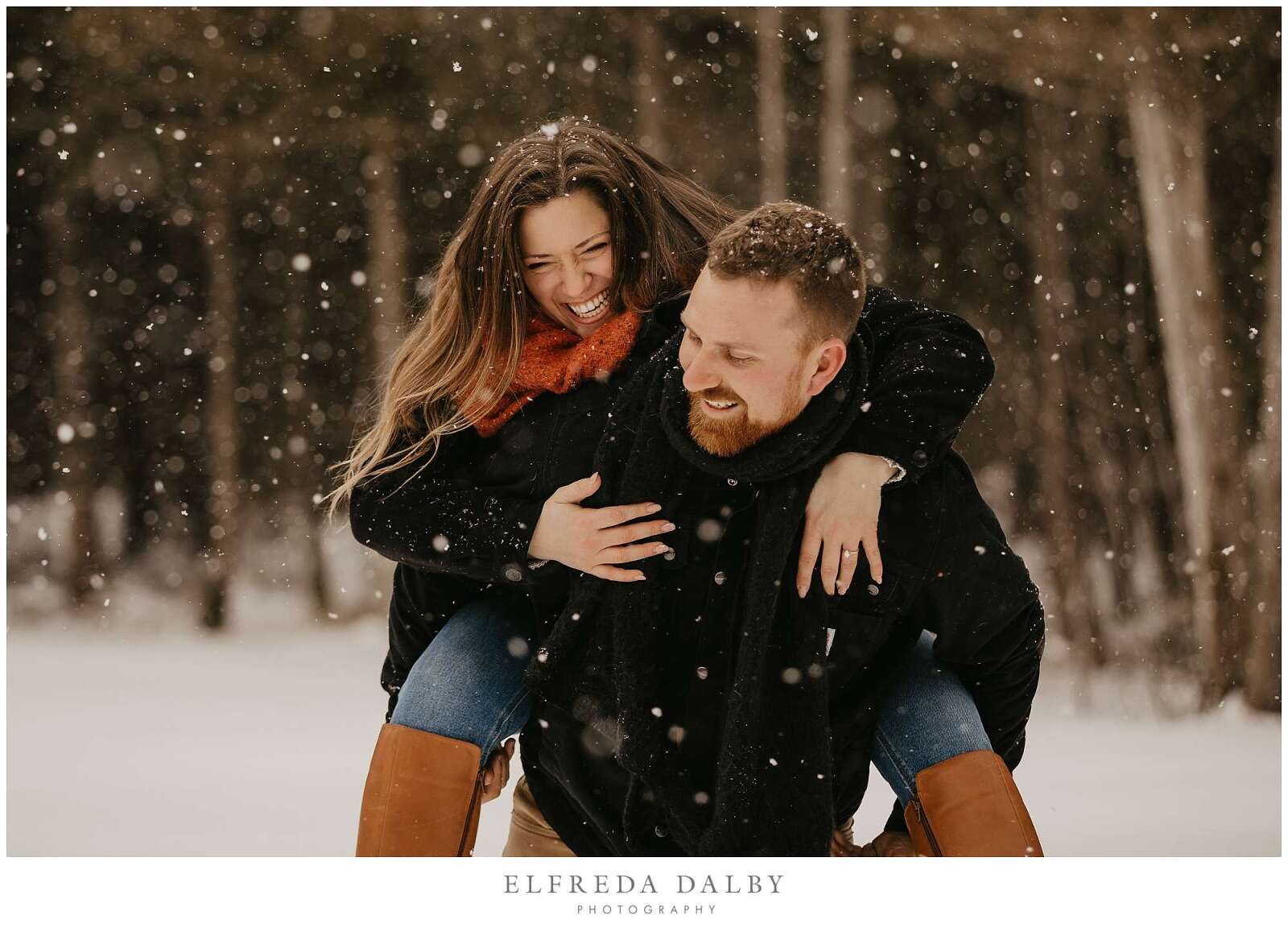 As we started the shoot, flurries began to fall from the sky. It felt like the perfect moment for a romantic winter dream couple’s shoot. Rhian and Eric embraced the cold with joy. They played in the snow, letting their laughter fill the air. Their playfulness made it easy to capture real moments between this couple in love.