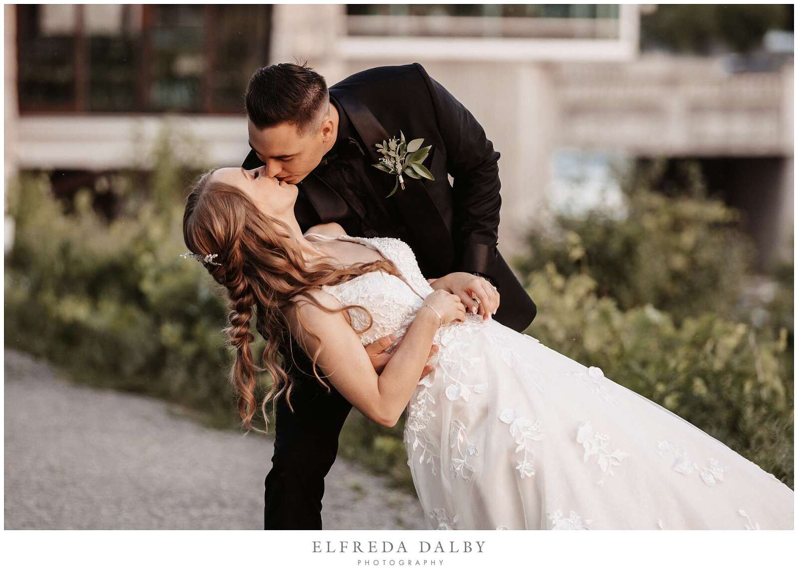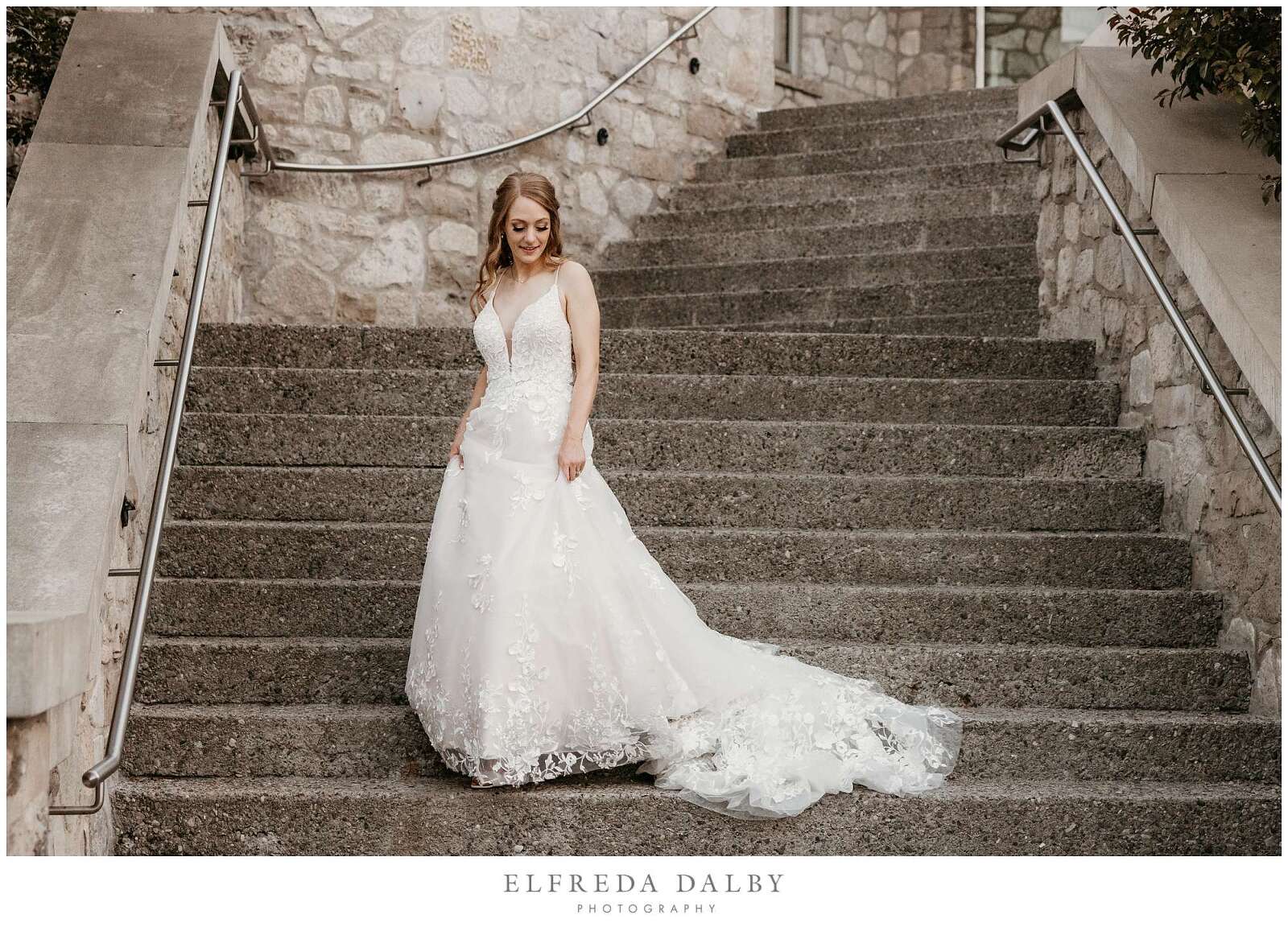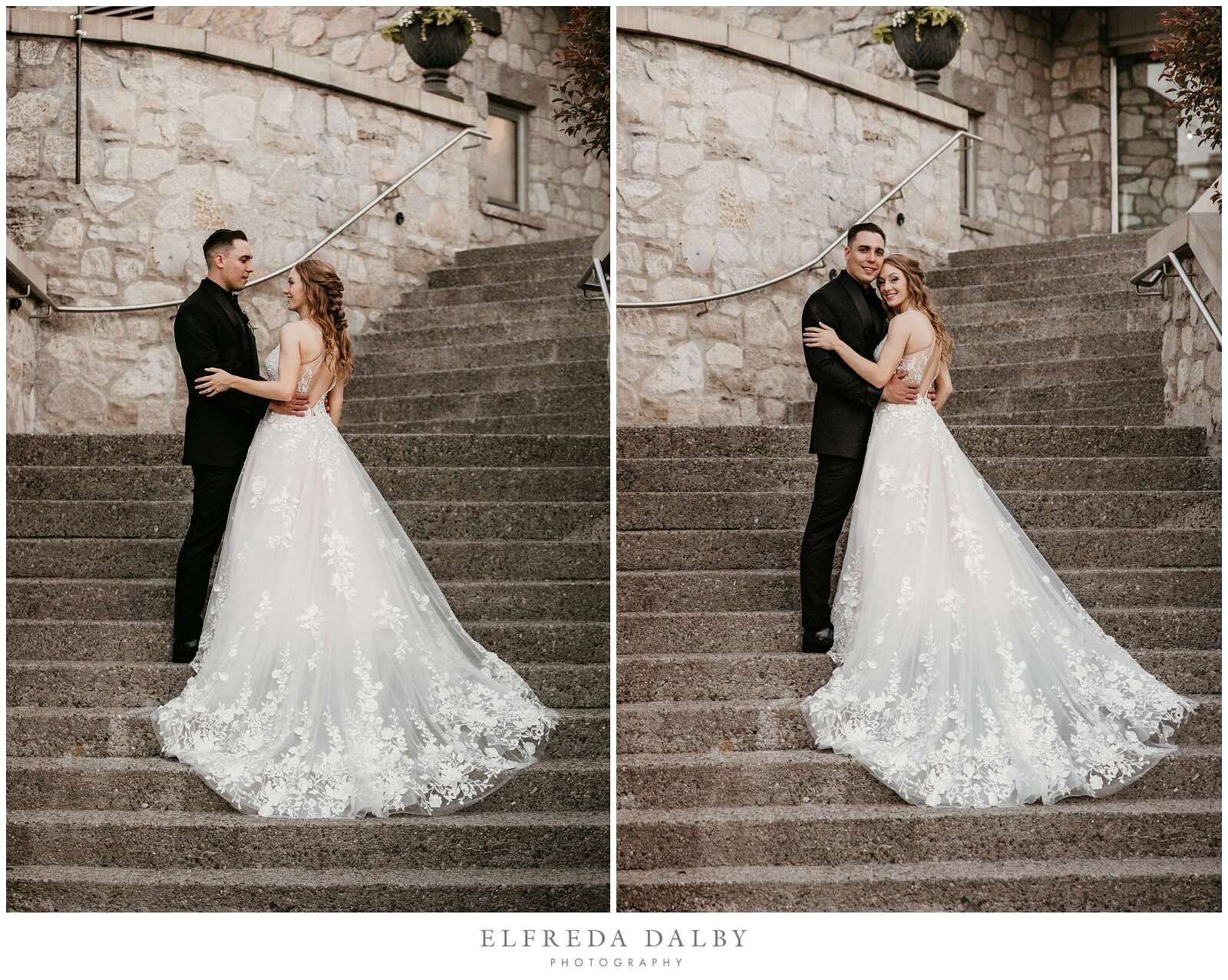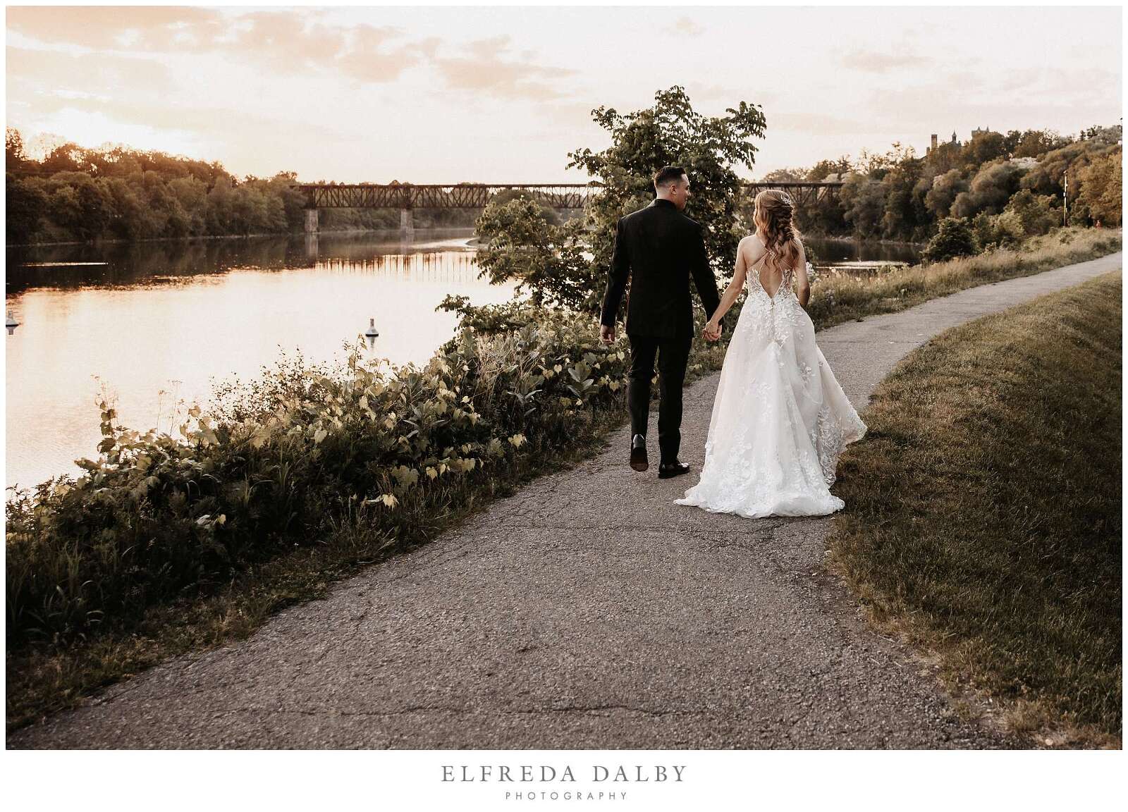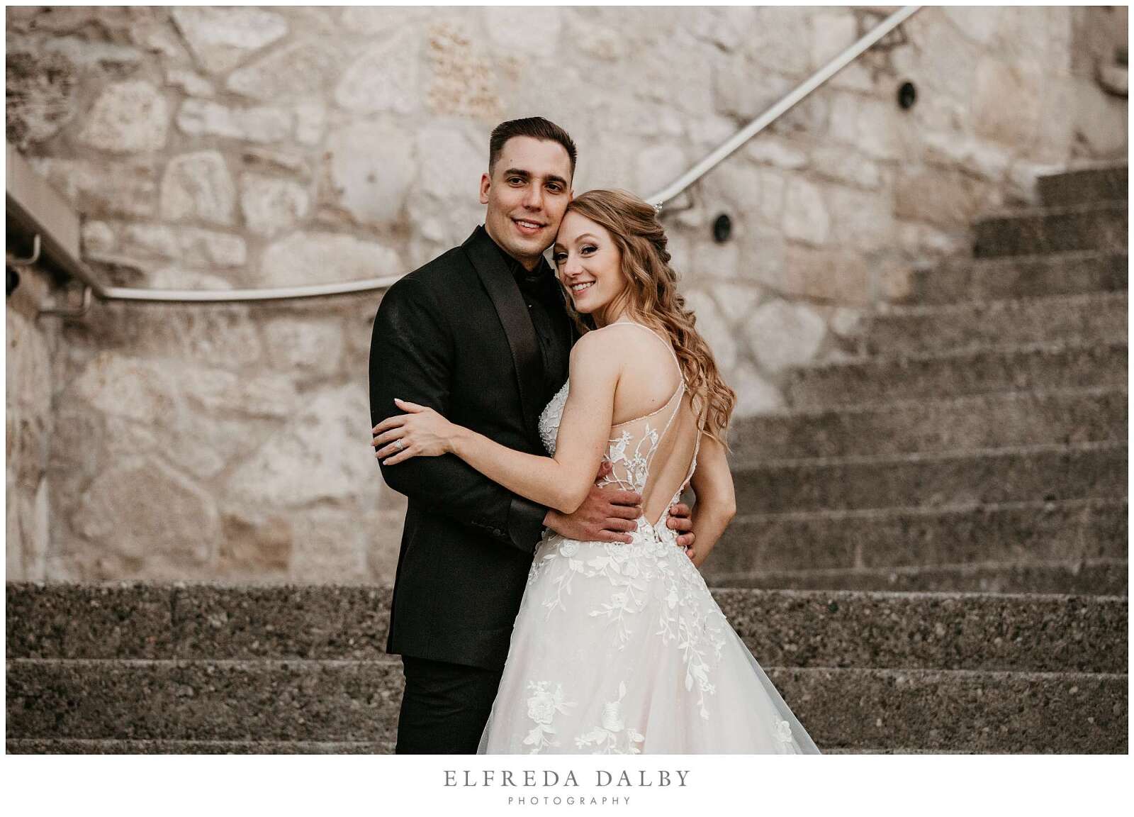 As the sun began to set, we took our lovely couple out for some golden hour photos around the Cambridge Mill property. We also made sure to get some portraits on the enchanting Juliet balcony. The view from up there is breathtaking and shouldn’t be missed.