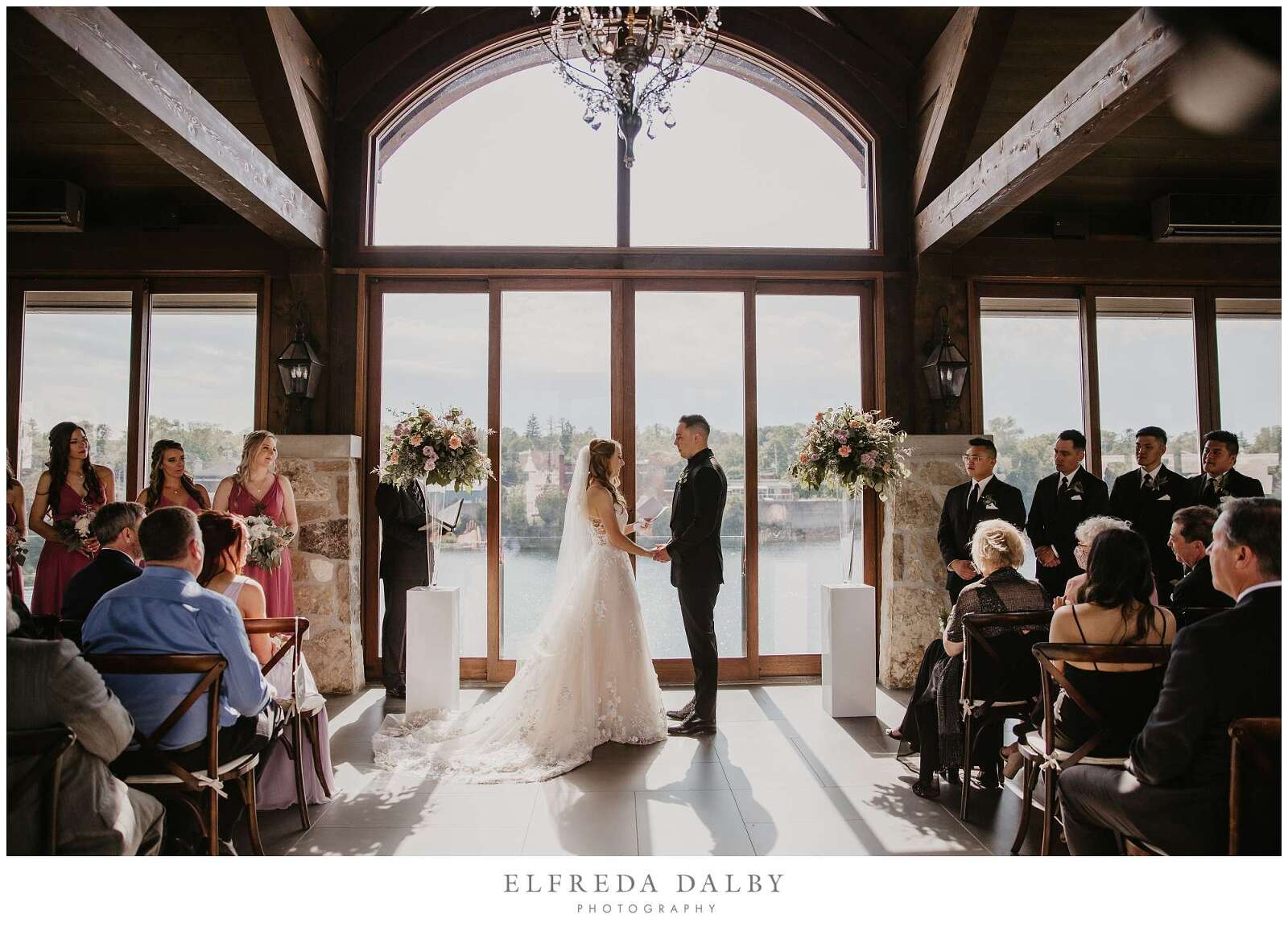 Sarah and Albert had a beautiful wedding at Cambridge Mill, in Cambridge, Ontario. Their ceremony took place in the pavilion chapel which overlooks the majestic Grand River offering a wonderful outdoor feel while keeping guests cool and comfortable from the summer heat. The light in the chapel is absolutely beautiful and one of the big reasons we love photographing wedding in the chapel so much. It creates a perfect backdrop for any couple’s vows, making it one of our favourite spots for ceremonies.