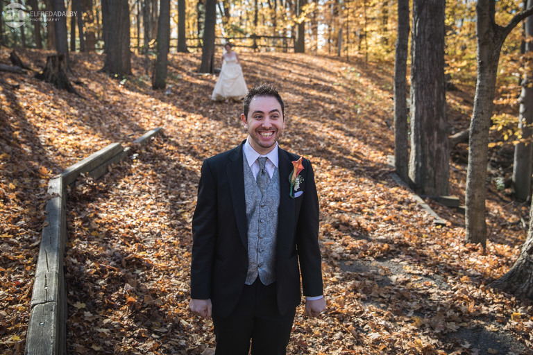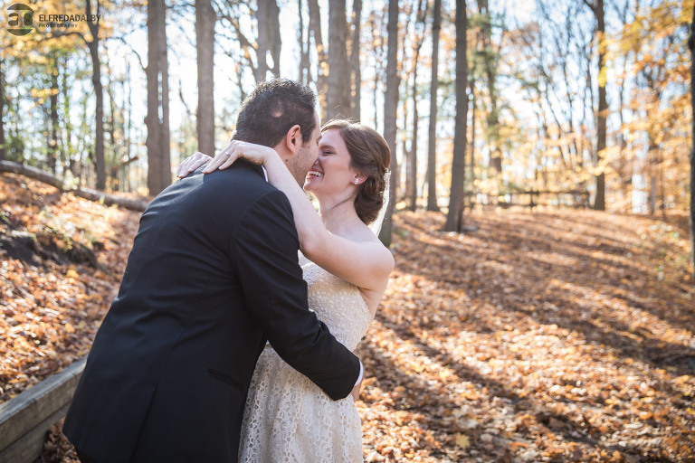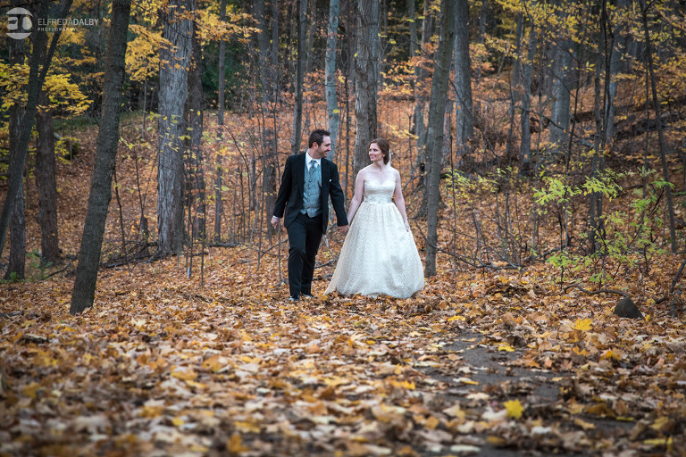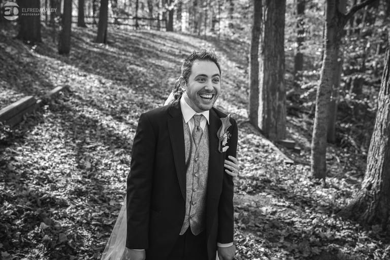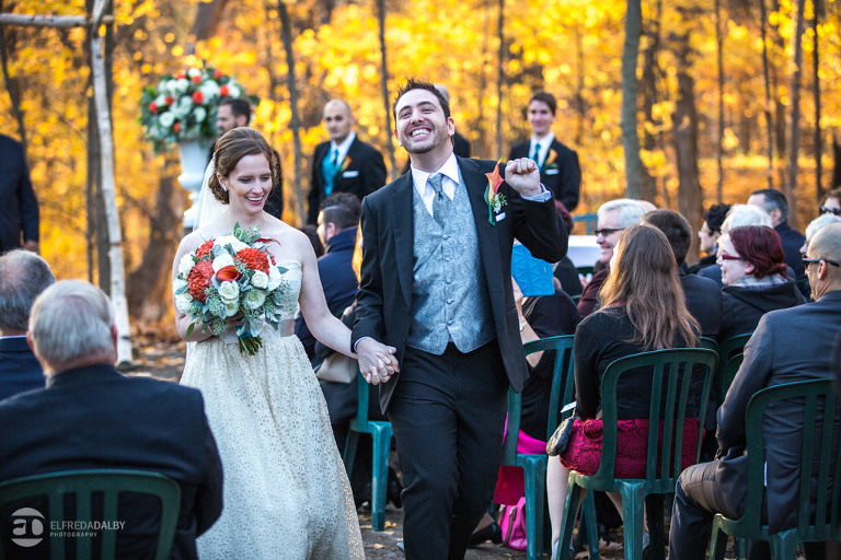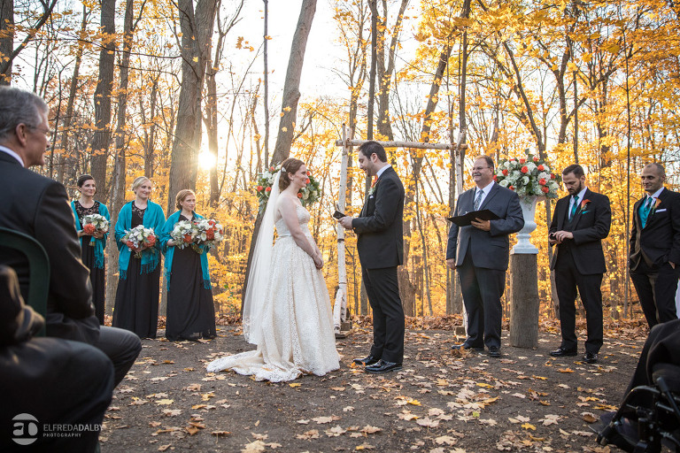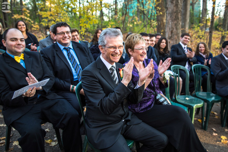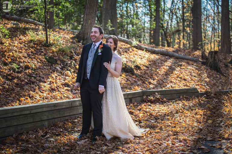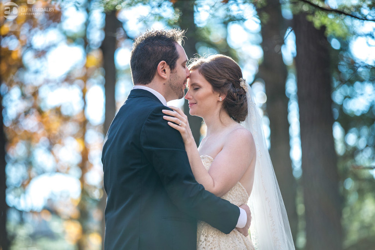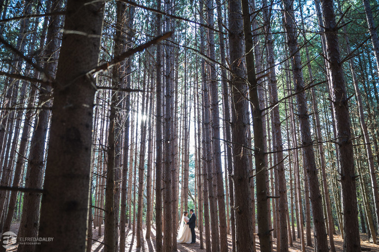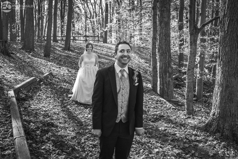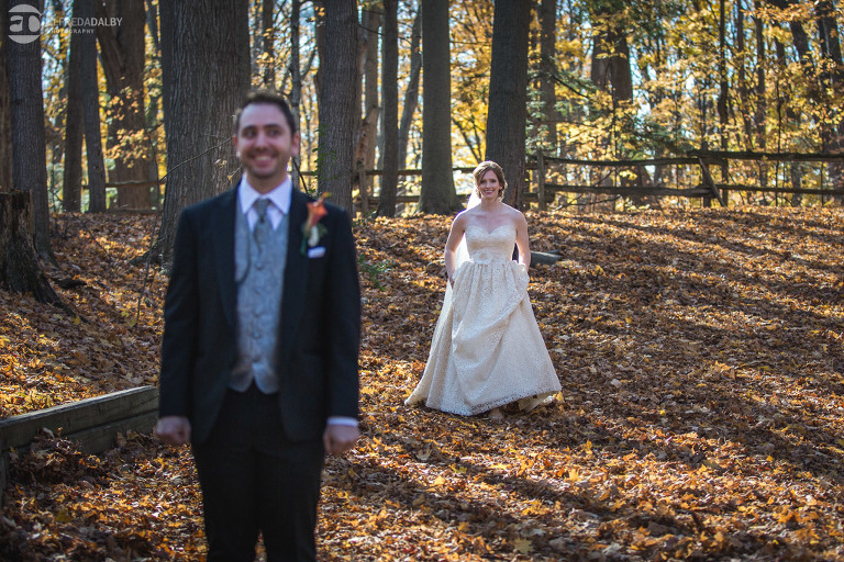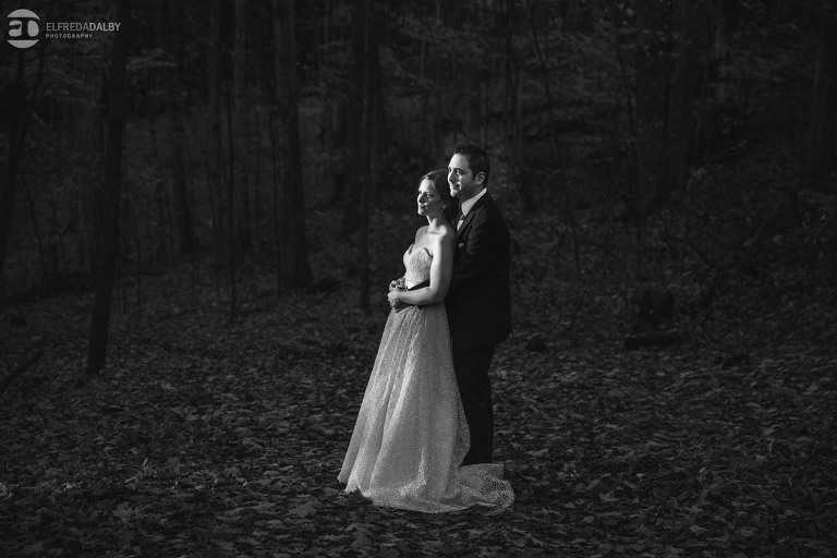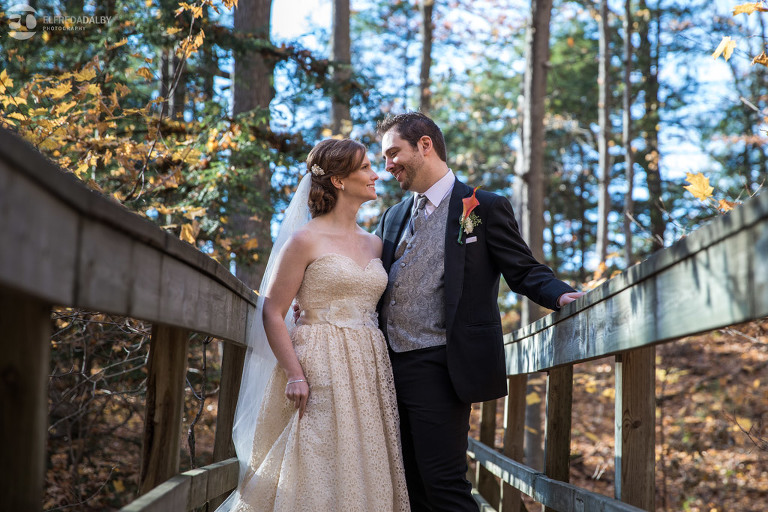 It’s really difficult to know where to begin when writing about this incredible wedding. Incredible because of the amazing couple we were able to work with and get to know. Julia and Andrew are two very special people. They live life to the fullest and have so much fun together. They are so in love. The thing is, when you spend time around them you just feel happier. Julia and Andrew exude love and happiness, and it’s infectious. Did Julia and Andrew enjoy every minute of their wedding day? A resounding yes, yes, yes!!! They tied the knot at one of our all-time favourite wedding venues, the Kortright Centre for Conservation in Vaughan. We’ve done many weddings at the Kortright Centre and every time we photograph a wedding there we continue to discover more spots to create stunning photos. It’s heaven to us! Now this wedding was filled with some of the most beautiful moments we’ve ever seen. The first would surely have to be seeing the excitement on Andrew’s face as Julia approached him during their first look and the unbridled emotion as they saw each other the first time on their wedding day. It was so beautiful! Andrew and Julia also had the most fun-filled ceremony exit and first dance that we’ve ever seen. One of the most awesome moments was when Andrew took the Mike and sang Bohemian Rhapsody word for word. So so awesome!! Definitely the most entertaining fun groom we’ve ever had! Without a doubt the most beautiful part of the wedding was listening to Julia and Andrew speak about their love for each other during their couple speech. After hearing each of them express how they feel for one another I believe everyone in that room went home that night wanting to be better – better at expressing love to people in their lives and just being better people. That is how Elfreda and I felt. That is the effect Julia and Andrew had on us and we feel so lucky to have shared their special day with them.