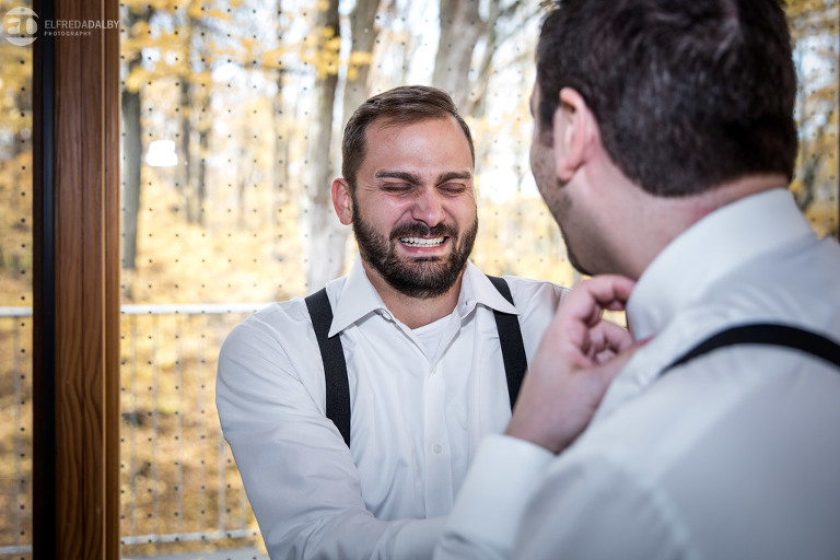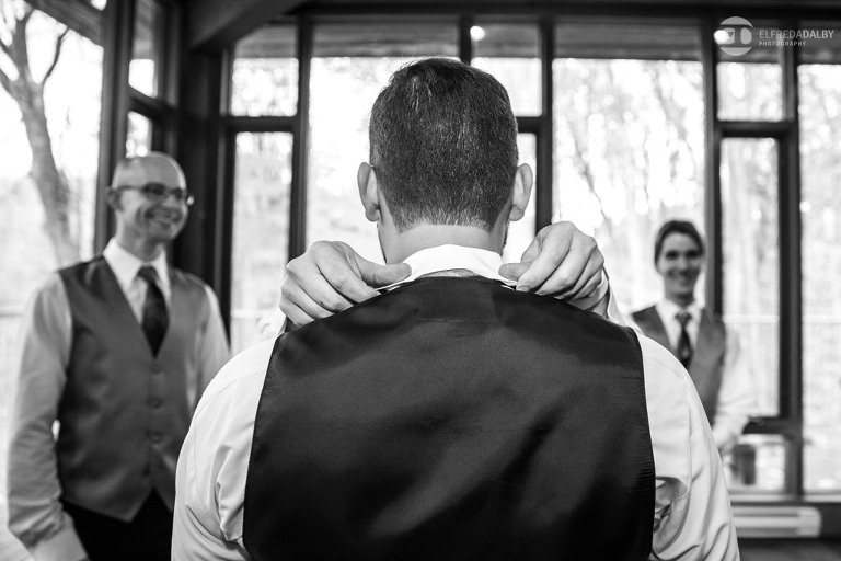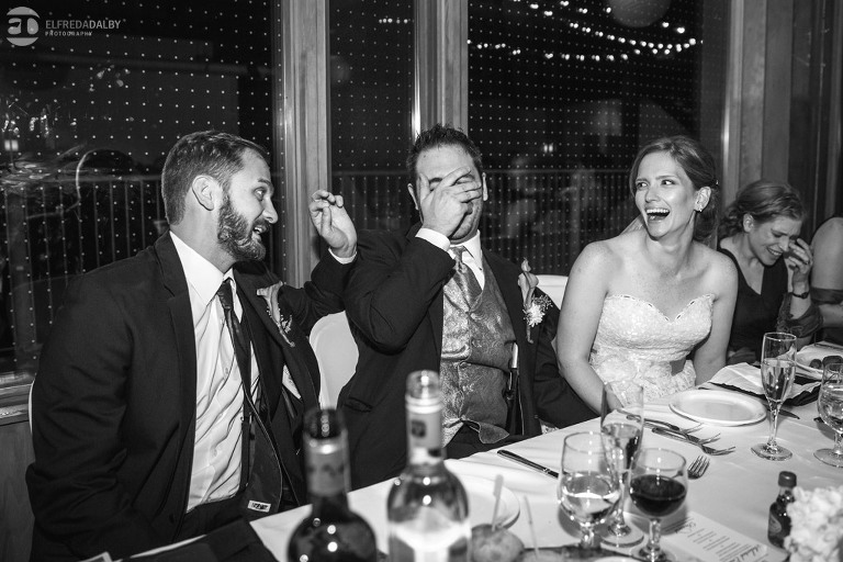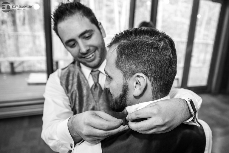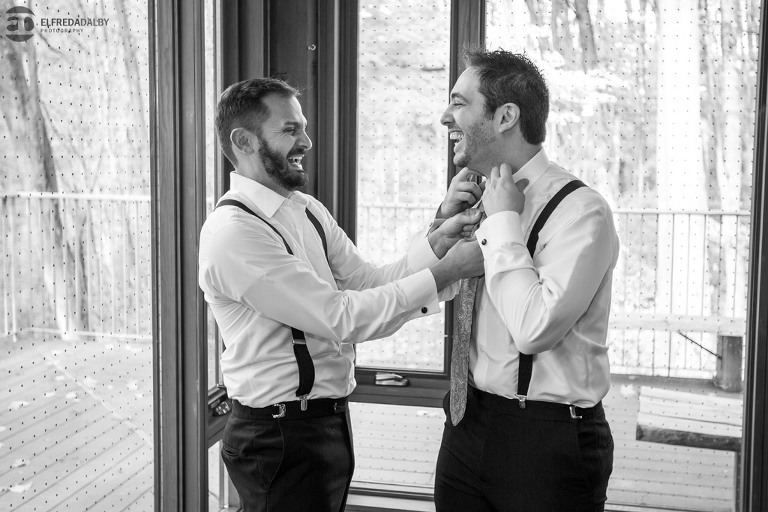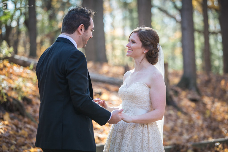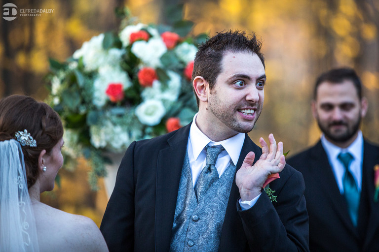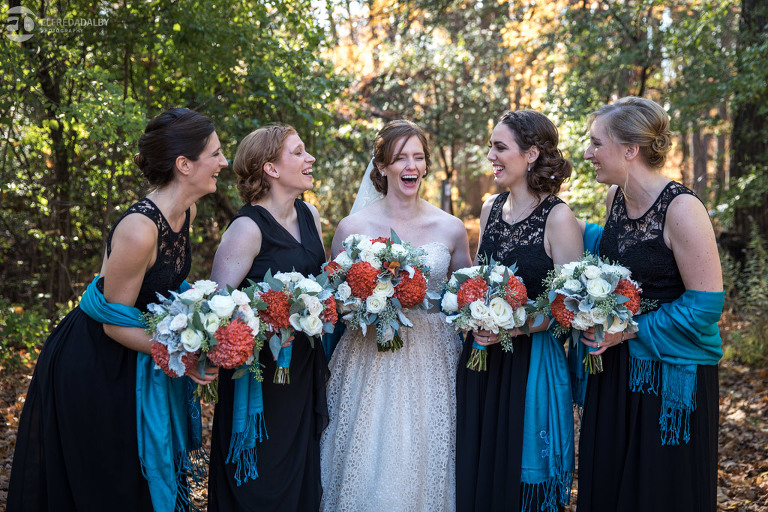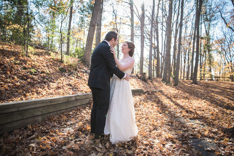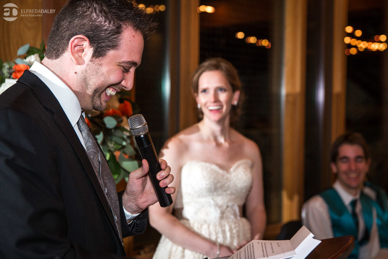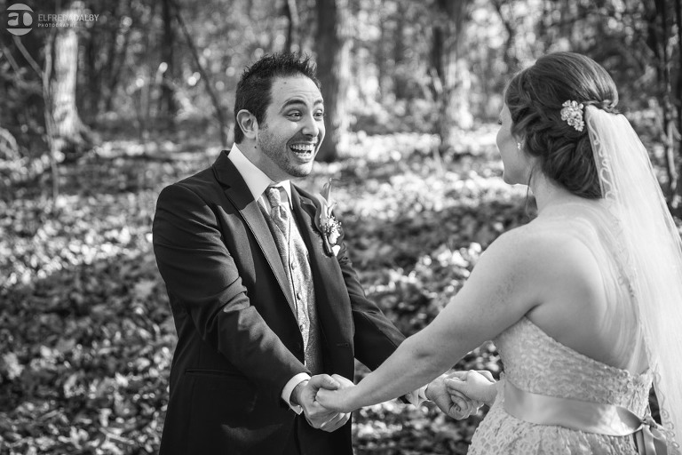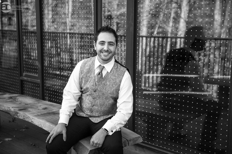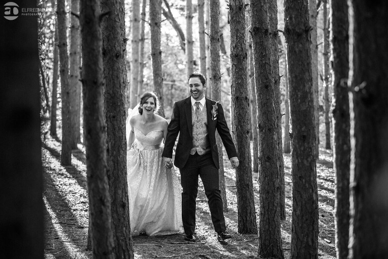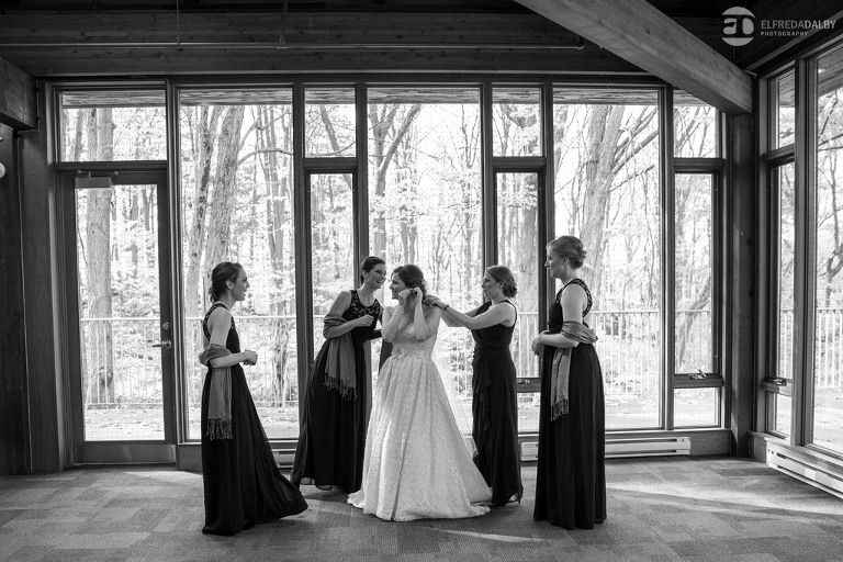 It’s really difficult to know where to begin when writing about this incredible wedding. Incredible because of the amazing couple we were able to work with and get to know. Julia and Andrew are two very special people. They live life to the fullest and have so much fun together. They are so in love. The thing is, when you spend time around them you just feel happier. Julia and Andrew exude love and happiness, and it’s infectious. Did Julia and Andrew enjoy every minute of their wedding day? A resounding yes, yes, yes!!! They tied the knot at one of our all-time favourite wedding venues, the Kortright Centre for Conservation in Vaughan. We’ve done many weddings at the Kortright Centre and every time we photograph a wedding there we continue to discover more spots to create stunning photos. It’s heaven to us! Now this wedding was filled with some of the most beautiful moments we’ve ever seen. The first would surely have to be seeing the excitement on Andrew’s face as Julia approached him during their first look and the unbridled emotion as they saw each other the first time on their wedding day. It was so beautiful! Andrew and Julia also had the most fun-filled ceremony exit and first dance that we’ve ever seen. One of the most awesome moments was when Andrew took the Mike and sang Bohemian Rhapsody word for word. So so awesome!! Definitely the most entertaining fun groom we’ve ever had! Without a doubt the most beautiful part of the wedding was listening to Julia and Andrew speak about their love for each other during their couple speech. After hearing each of them express how they feel for one another I believe everyone in that room went home that night wanting to be better – better at expressing love to people in their lives and just being better people. That is how Elfreda and I felt. That is the effect Julia and Andrew had on us and we feel so lucky to have shared their special day with them.