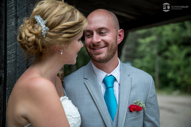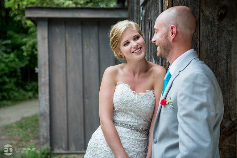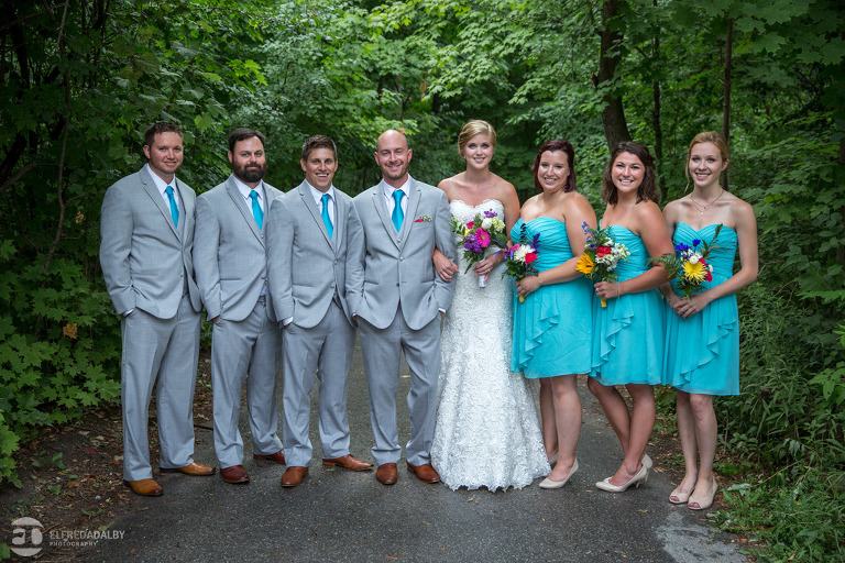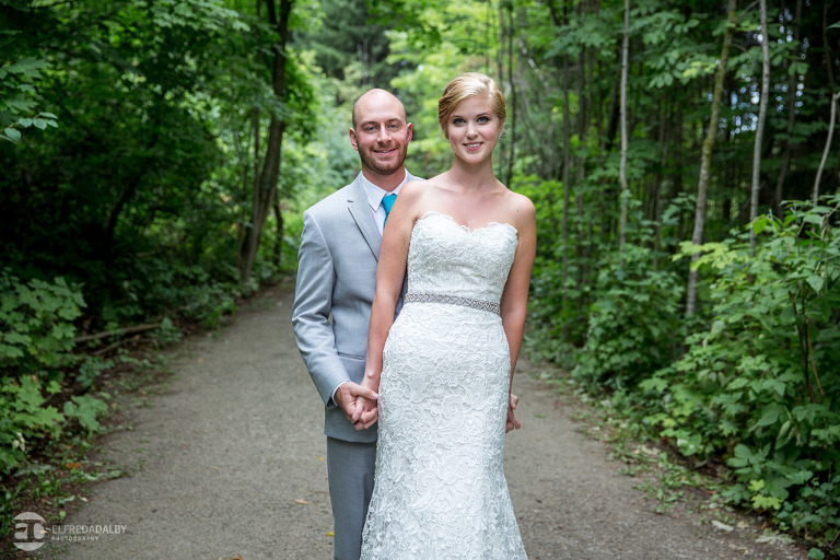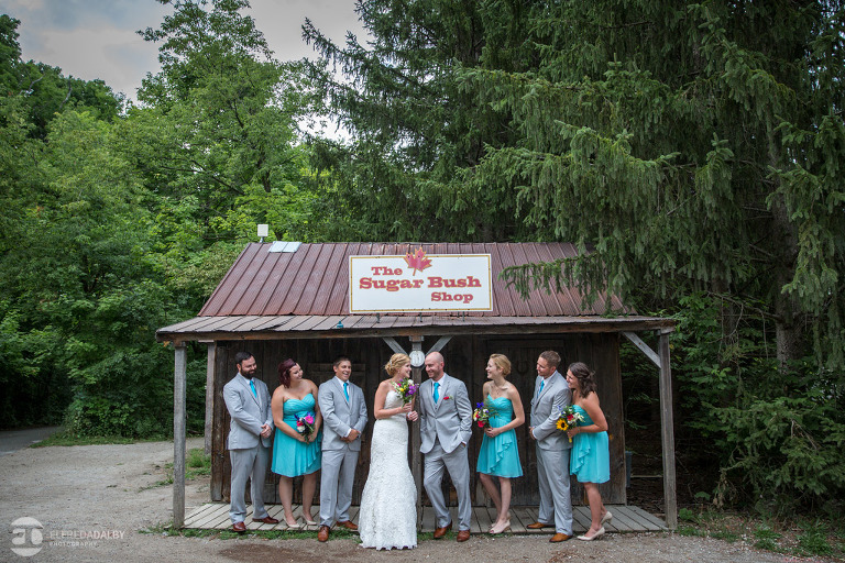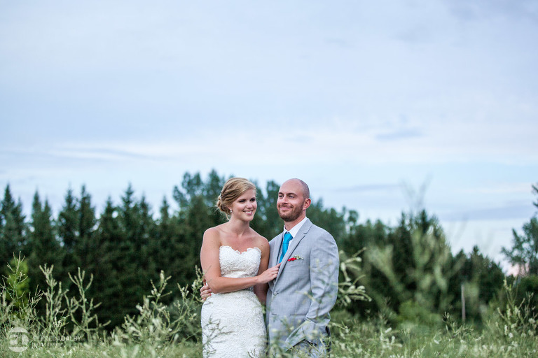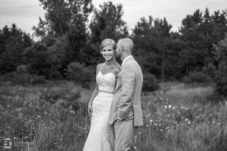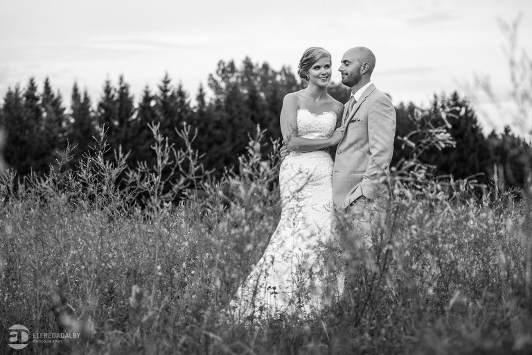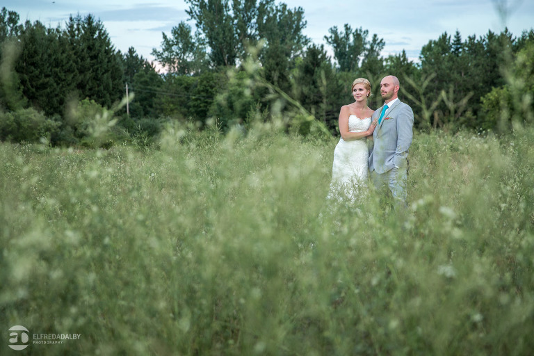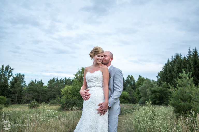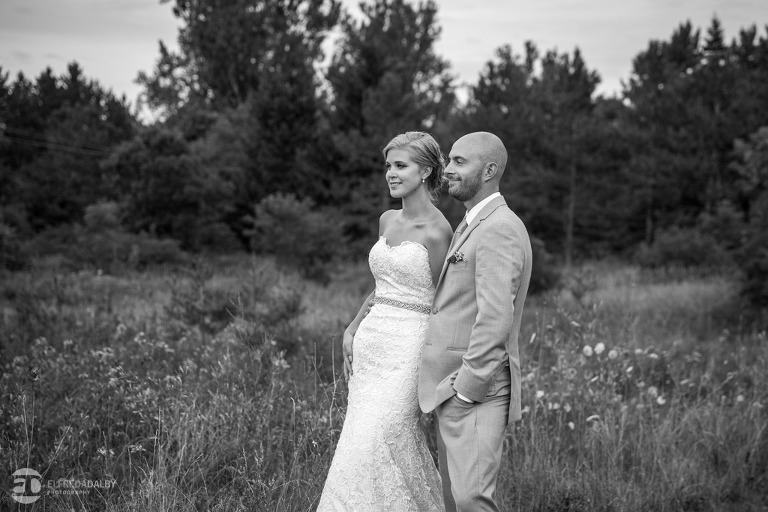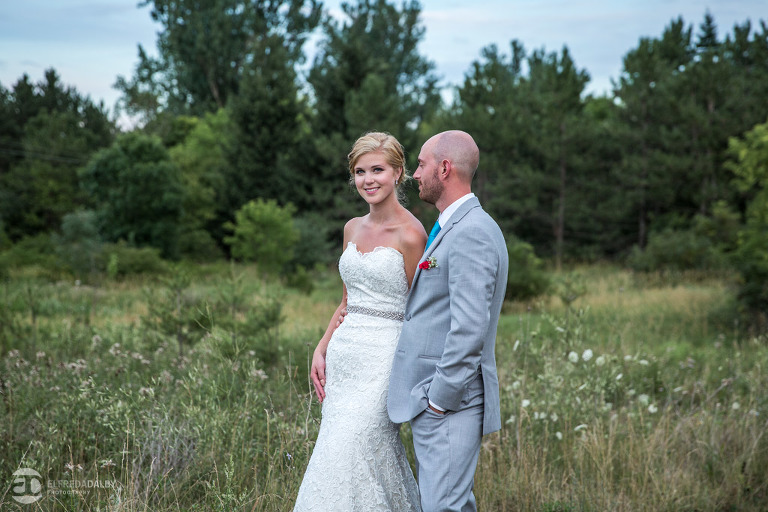 Lauren and Steve’s wedding day was one incredible day. They now live in Calgary, where Lauren is from, but brought out a whole herd of friendly and very fun Albertan family and friends for the celebration. For us the day started out with a heavy downpour when we were driving on the 400 on the way to Kortright. Luckily Lauren and Steve were having a late day summer ceremony. By the time we started doing some photos we were just getting some drip drops and then the sky cleared up. That left us with the perfect mix of sun and clouds for photos. Lauren and Steve set aside an awesome chunk of time for photos and we had a fantastic time with them during their portrait session. Lauren looked absolutely stunning in her dress and they were so at ease and comfortable in front of the camera. They really had fun with it and enjoyed themselves. We really enjoyed capturing them and loved being a part of their special day.