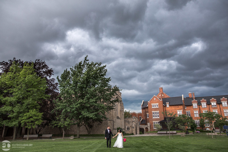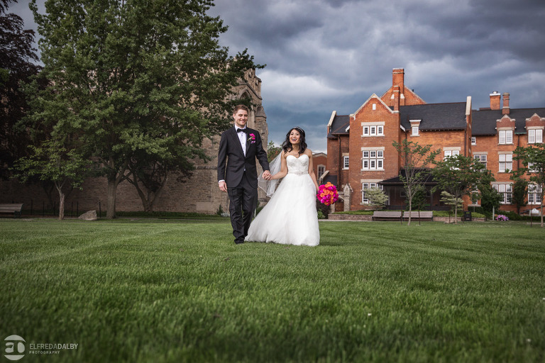 What an amazing time we had working with TC and Cam! They said their ‘I do’s’ inside the beautiful Ridley College chapel and continued their wedding celebration at Club Roma in St. Catharines. Cam being a Ridley alumnus, it made it very special to have their wedding ceremony in the historic Ridley Memorial Chapel and also do their wedding photos on the grounds of the Ridley campus. TC and Cam were very brave during their couple session when the dark clouds came rolling in. They remained calm and collected and had a lot of fun with it even when we got hit with a bit of rain. Awesome photographing them! Cam was so relaxed and natural and TC is probably the most graceful and photogenic bride we’ve ever had. She looked absolutely gorgeous and it was so much fun photographing her. Their whole wedding celebration was filled with so many fun and beautiful moments. What made it even more special was seeing the love and closeness of their family and friends. Their friends and whole family were so friendly and warm to us, too. We are certain we’ve never had so many different people ask us so many times if we had enough to eat. Definitely set a record and we loved it!