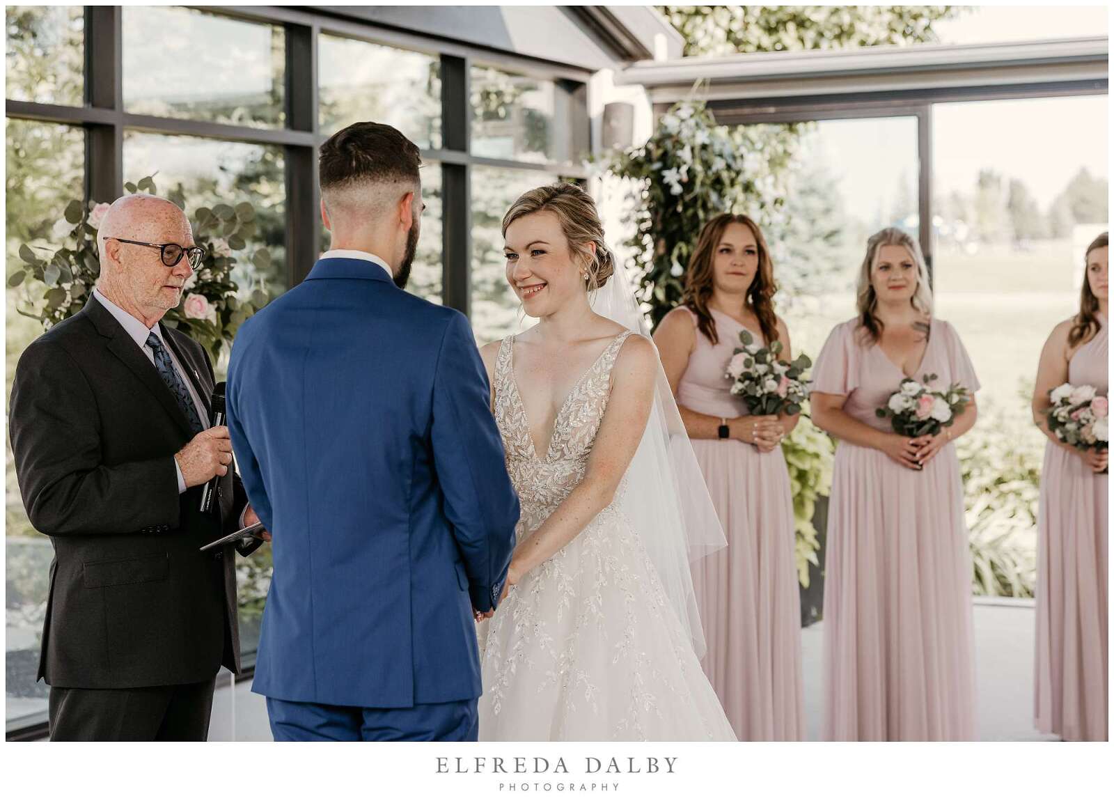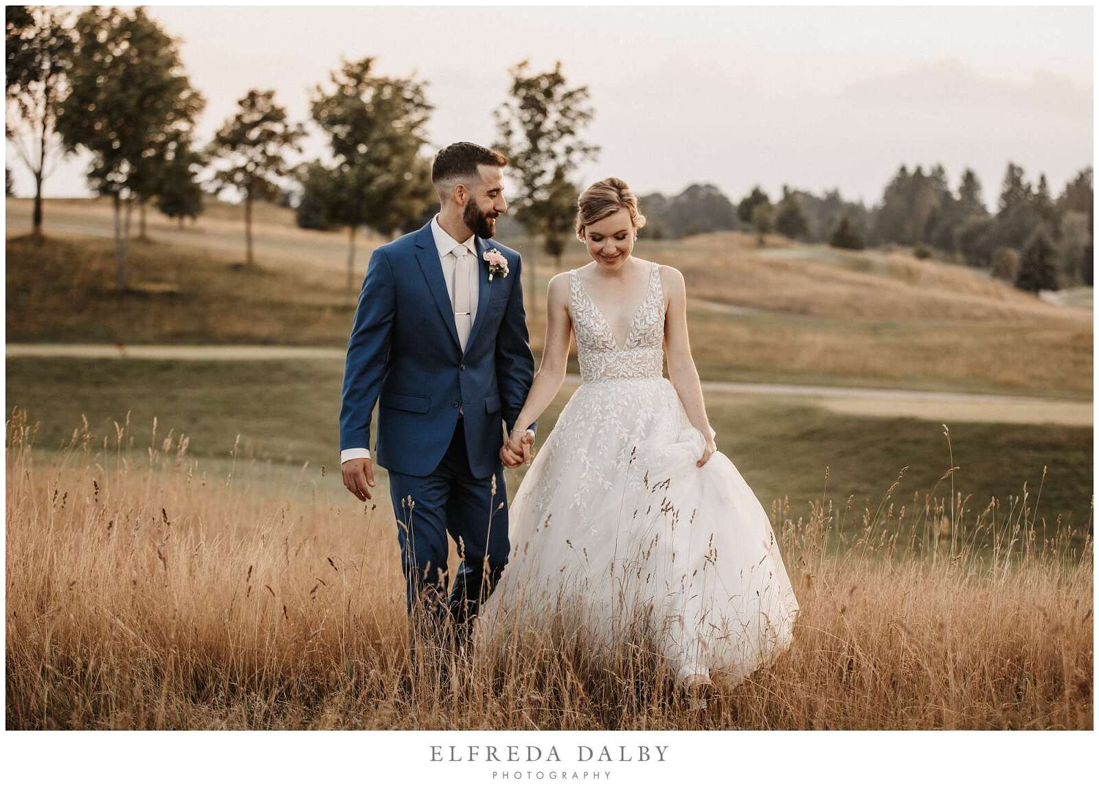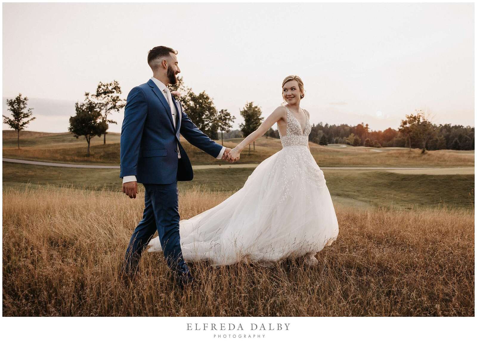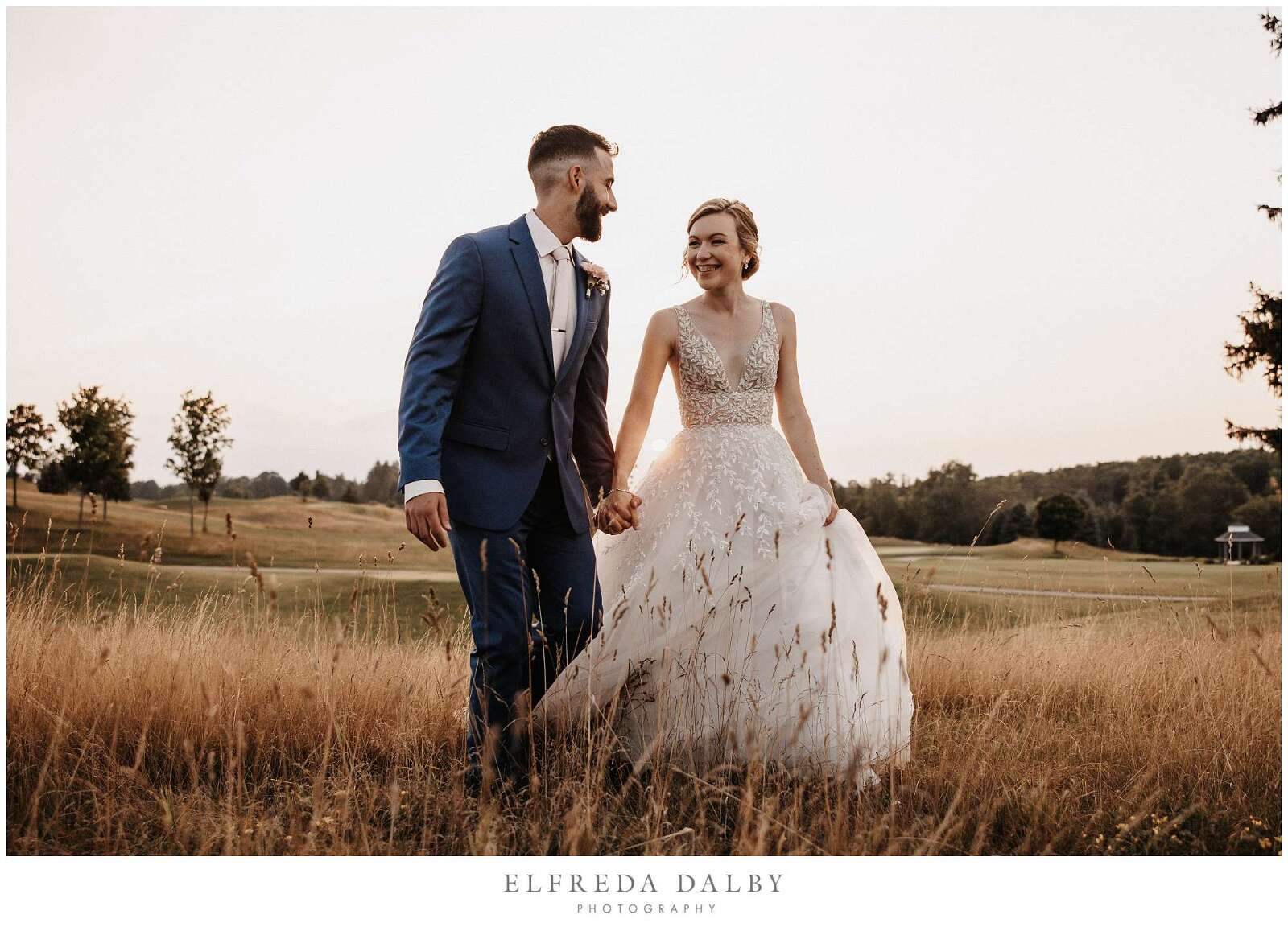 Throughout the day, we loved capturing the little moments – like their spontaneous laughter and loving glances; it all added to the story of their wedding day. Whistle Bear provided the best perfect backdrop with its beautiful forest and perfectly landscaped golf course, making the natural portraits we created for them feel so timeless. As the sun dipped below the horizon, we made sure to be out on the golf course to capture dream sunset shots that we are able to create at this incredible wedding venue. Few offer the gorgeous unobstructed sunsets that Whistle Bear Golf Club does.